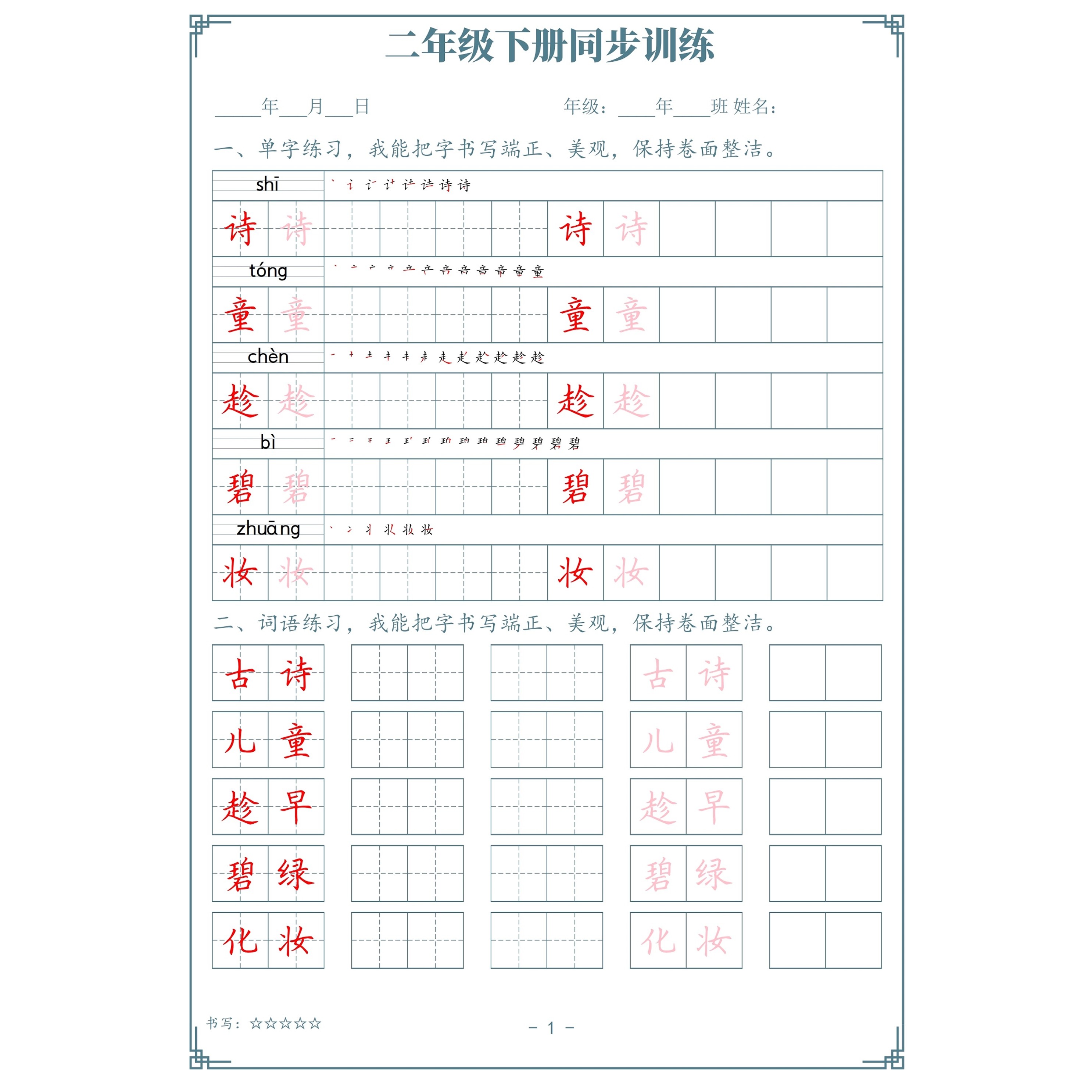 2025新版人教版一二三四五六年级上下册同步生字词语卷面实用练习