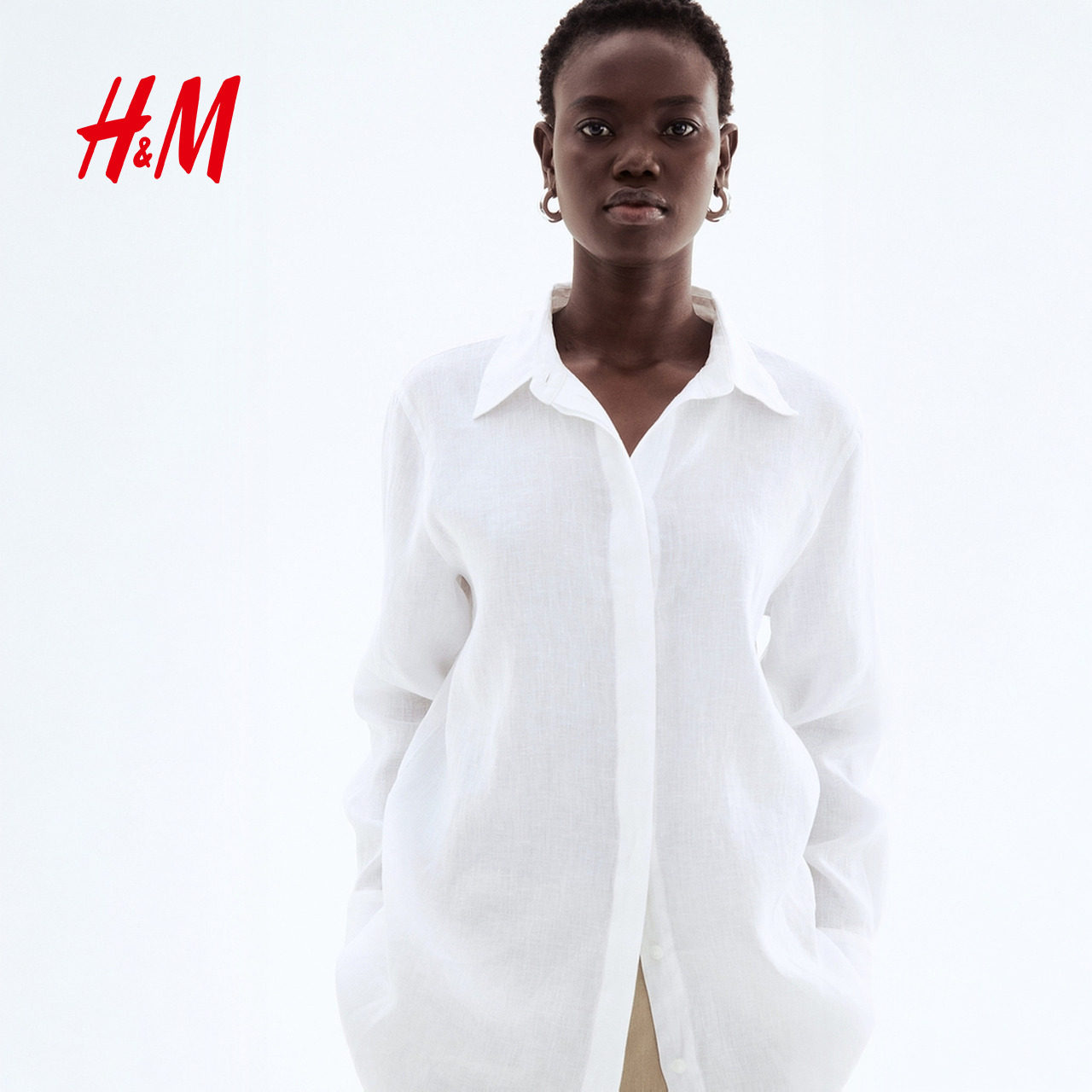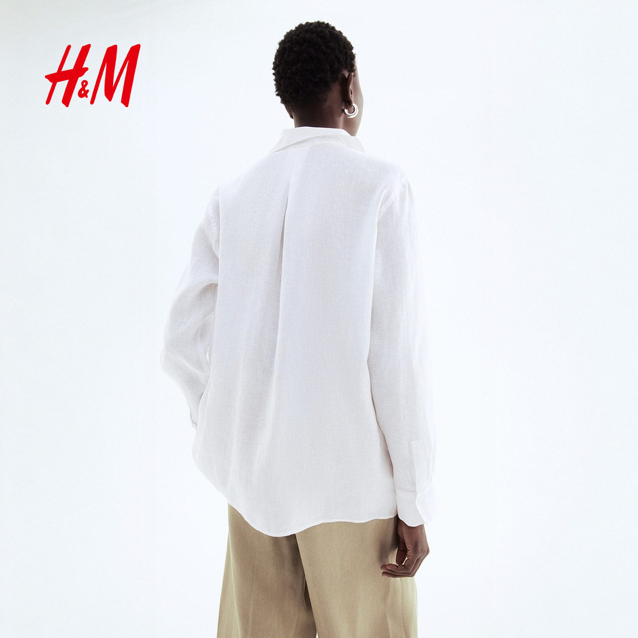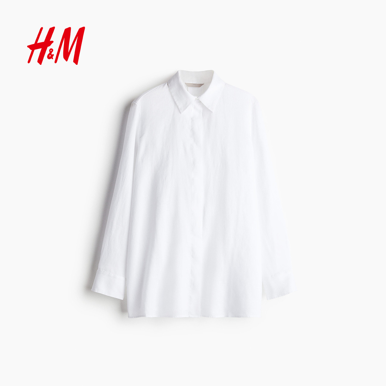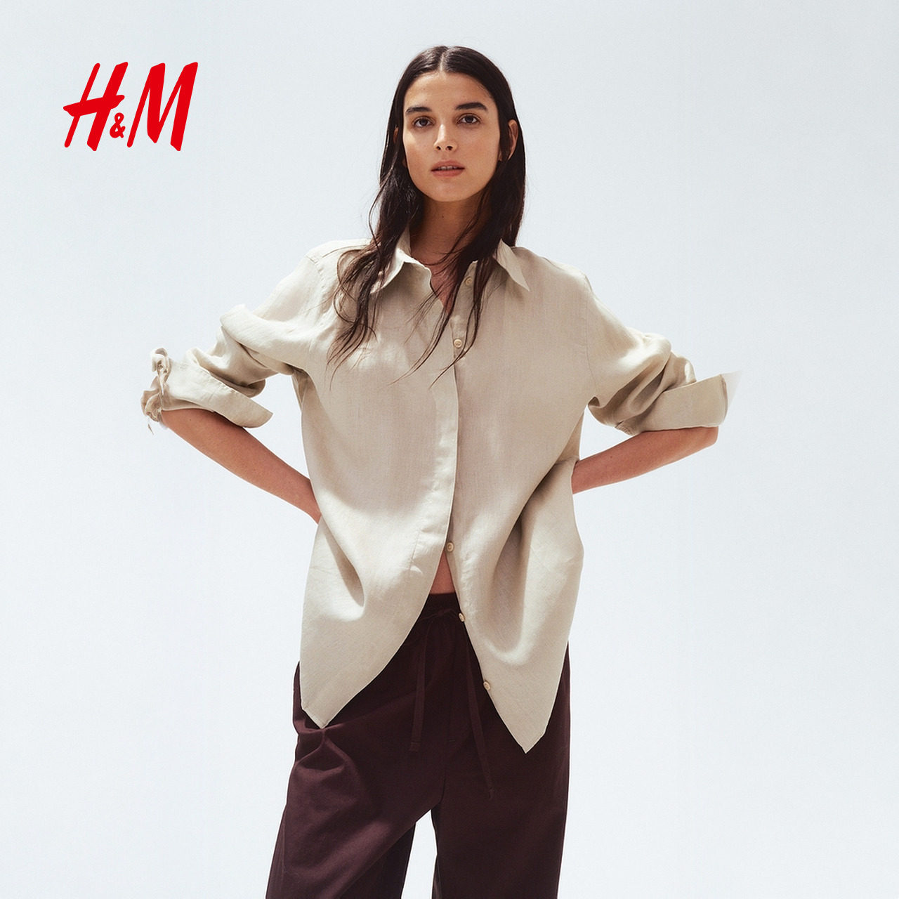 HM2025年冬季新款女装时尚休闲亚麻衬衫1269234