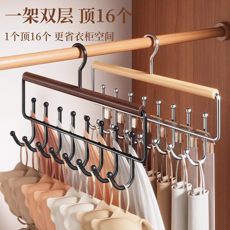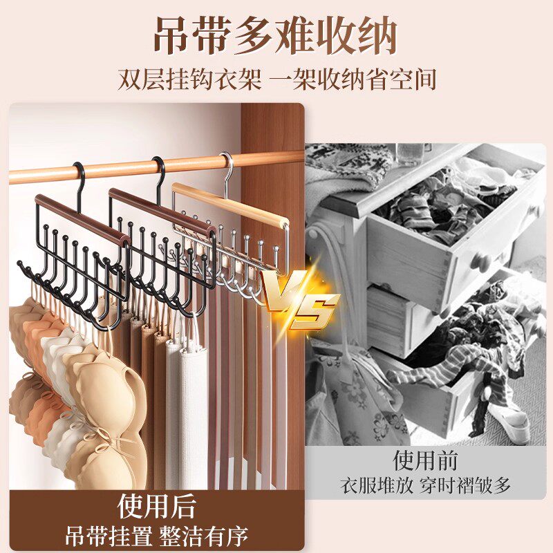 吊带衣架多功能内衣背心收纳神器家用宿舍实木挂钩波浪衣柜晾衣架