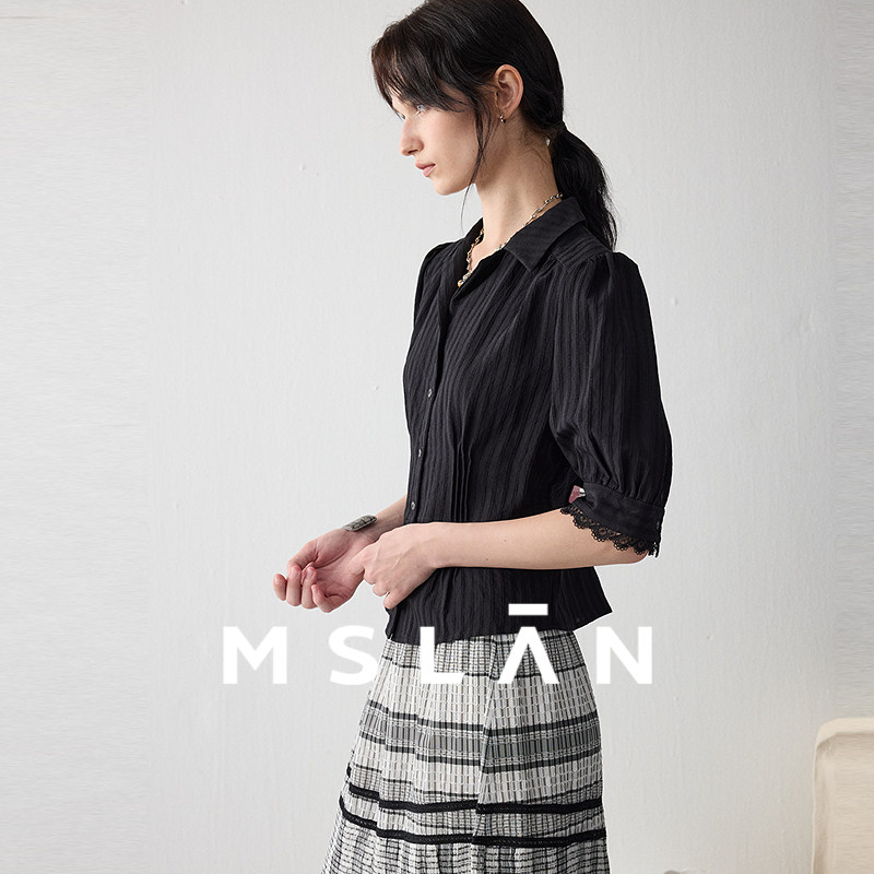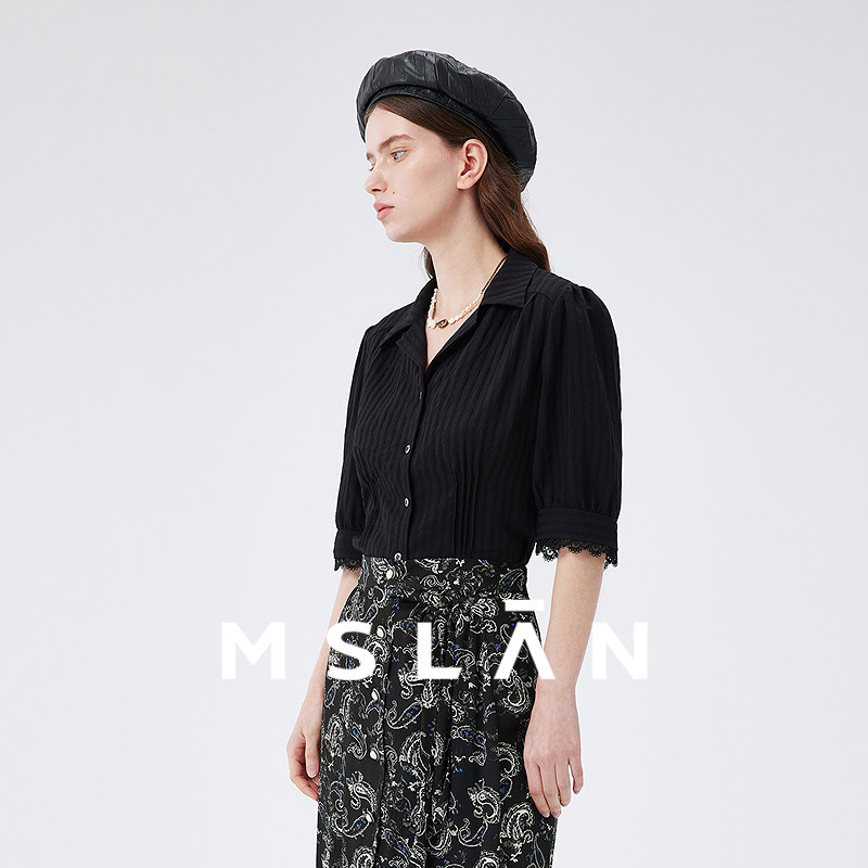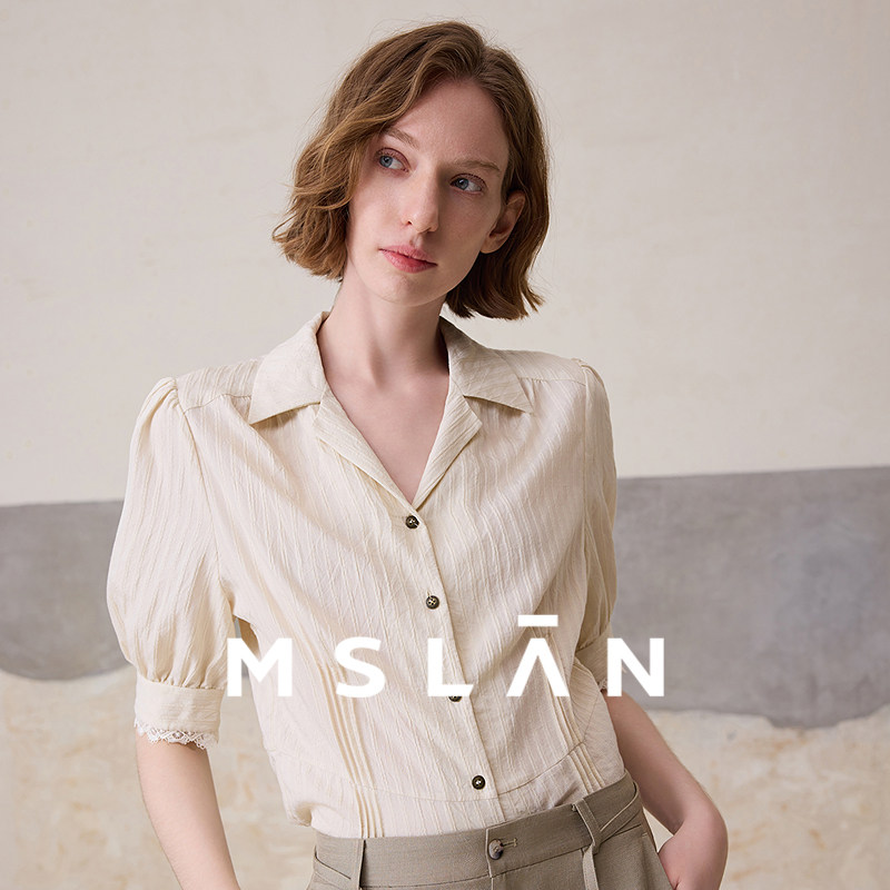 【遮肉泡泡袖】MSLAN春夏优雅蕾丝短袖衬衣收腰法式夏季衬衫女