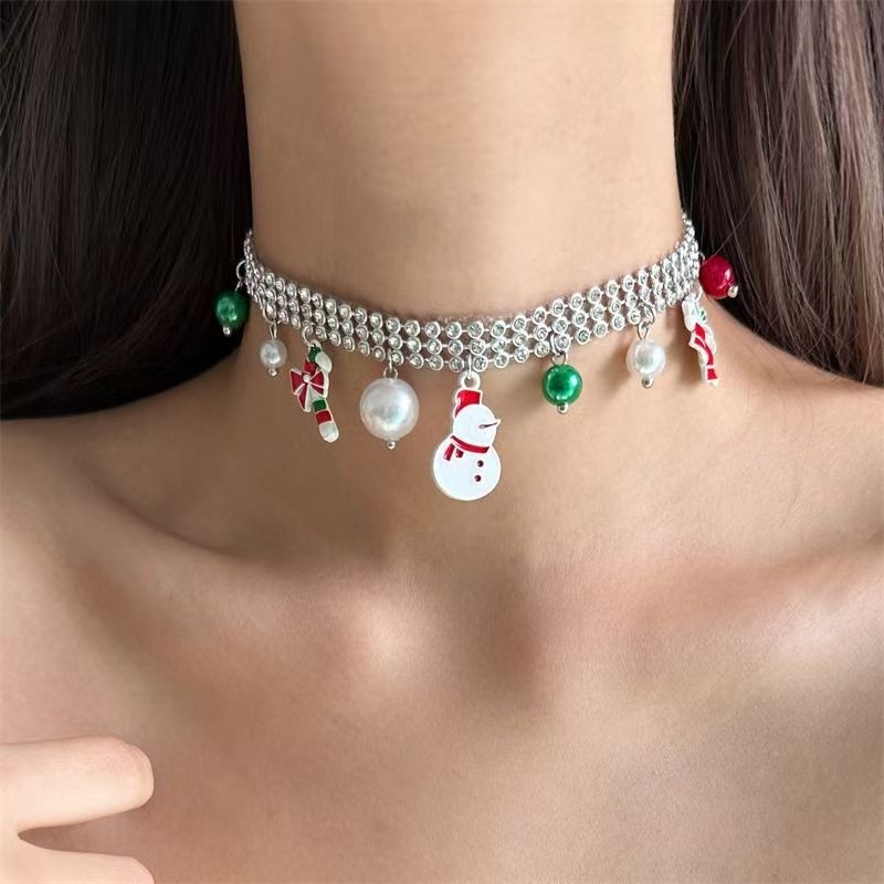 欧美潮流圣诞节圣诞雪人锁骨链女新款冬季氛围感个性辣妹风穿搭潮