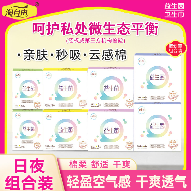 淘益生菌卫生巾日夜用超薄组合姨妈巾官方旗舰店正品有护翼日用