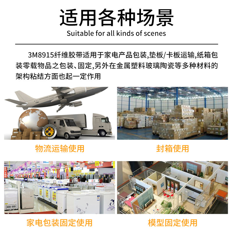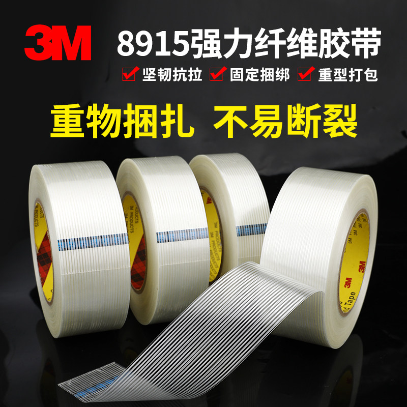 原装正品3M8915玻璃纤维胶带强力无痕单面贴防水耐温条纹重物捆绑固定抗拉冰箱电器锂电池家具包装