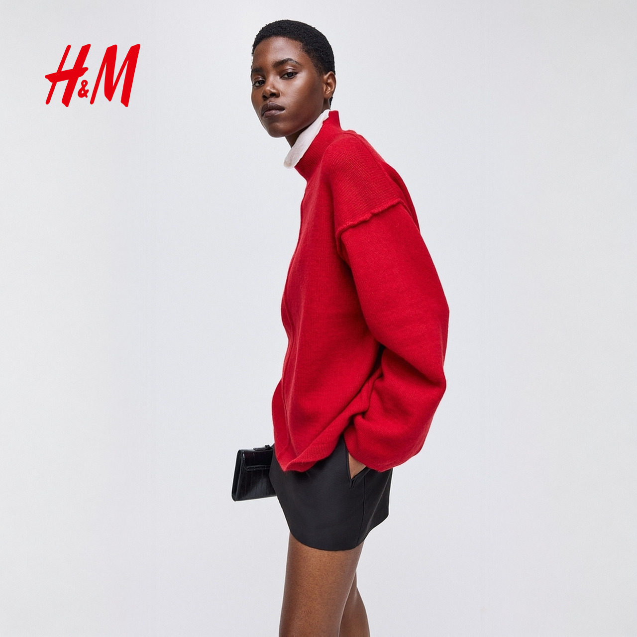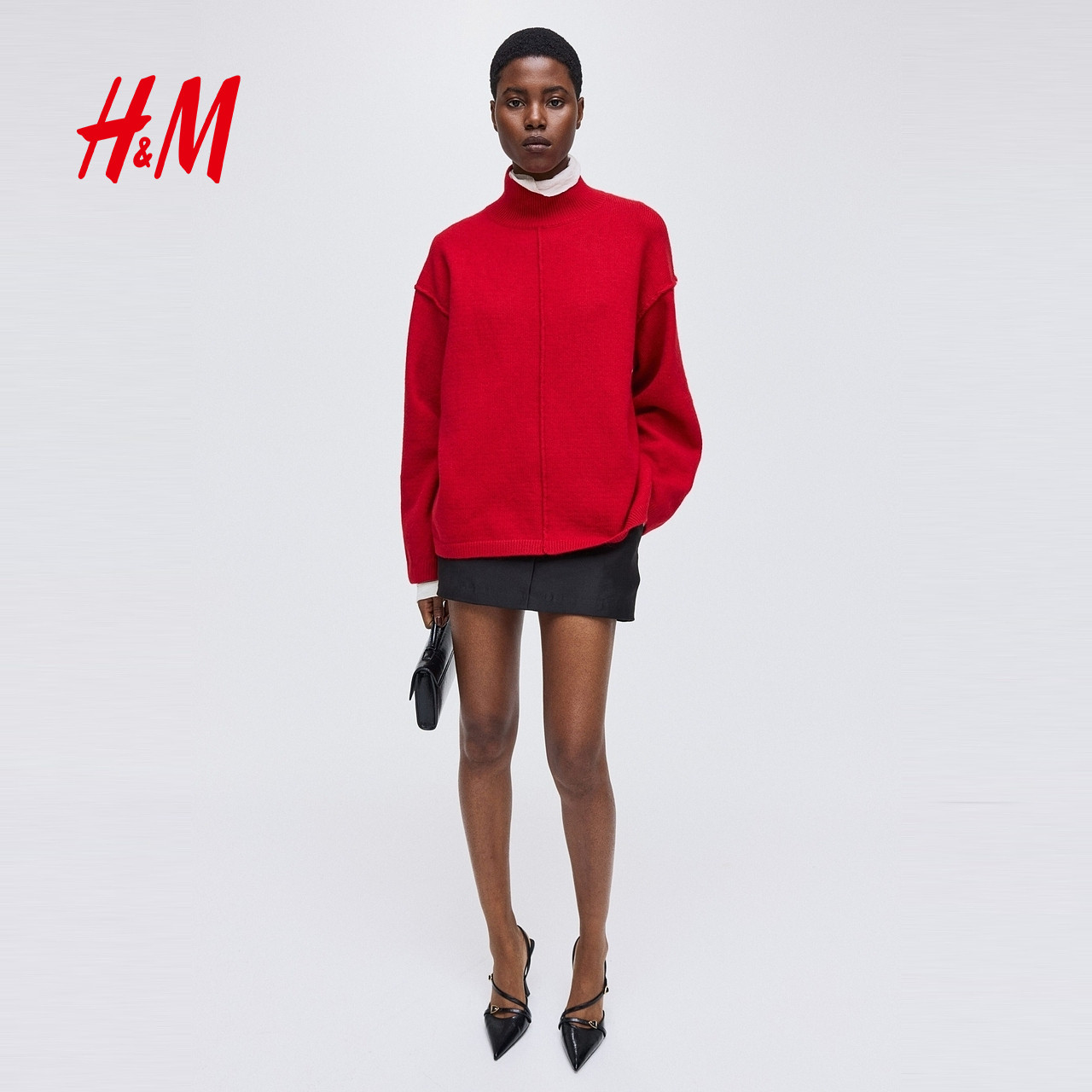 HM女装毛针织衫2025新款红色内搭里外皆暖穿搭套衫打底衫1315035