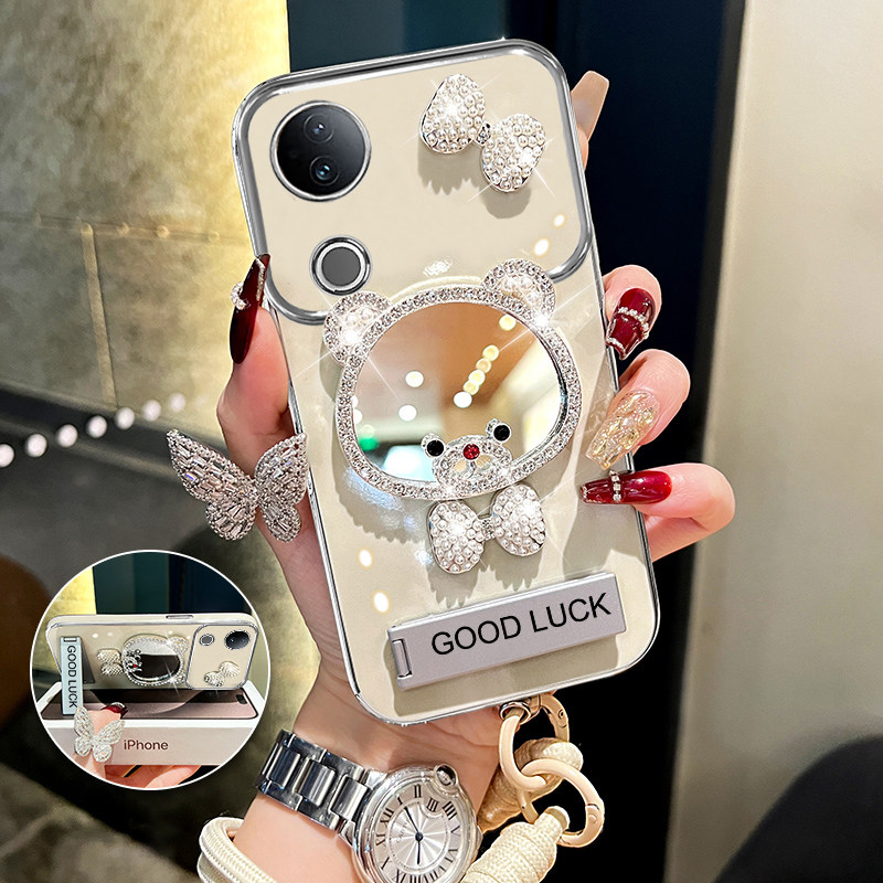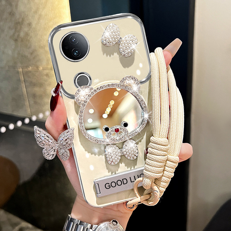 适用于vivos20手机壳s20pro领结熊补妆镜大视窗创意电镀全包防摔高级网红女款