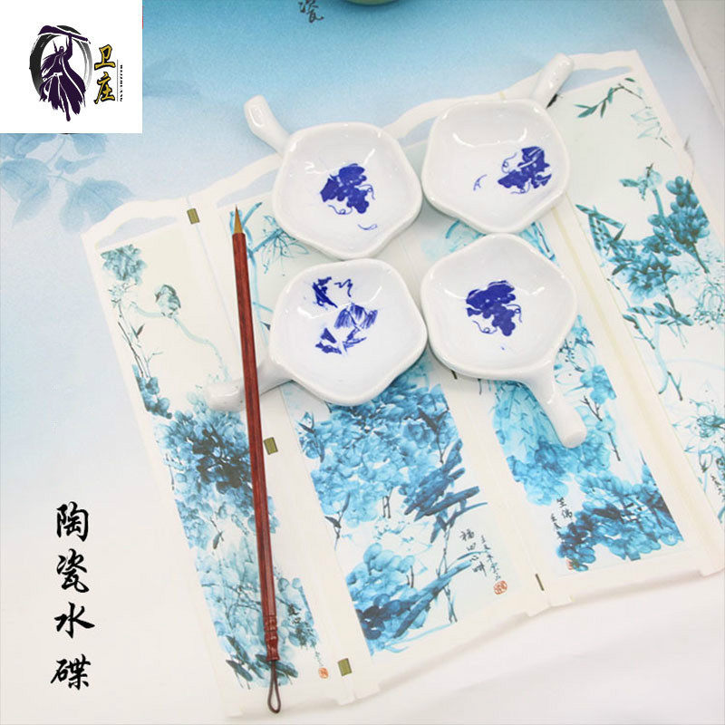 毛笔水碟 陶瓷两用笔洗笔搁 文房四宝墨碟 梅花水碟笔架陶瓷笔山