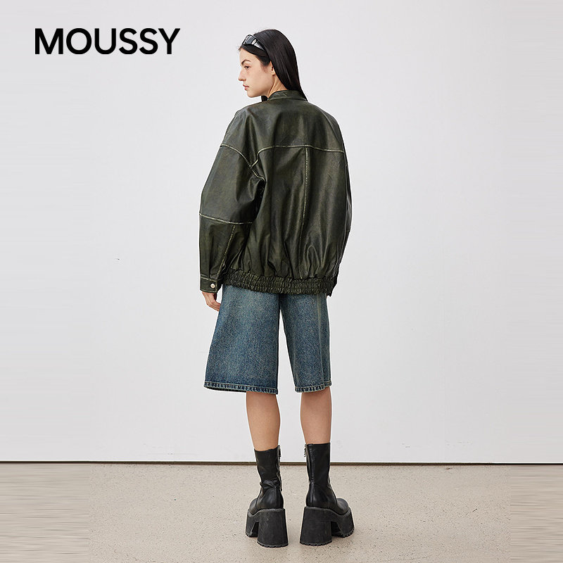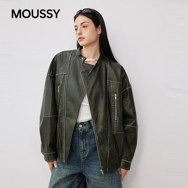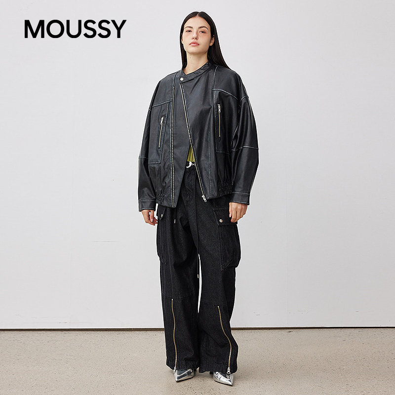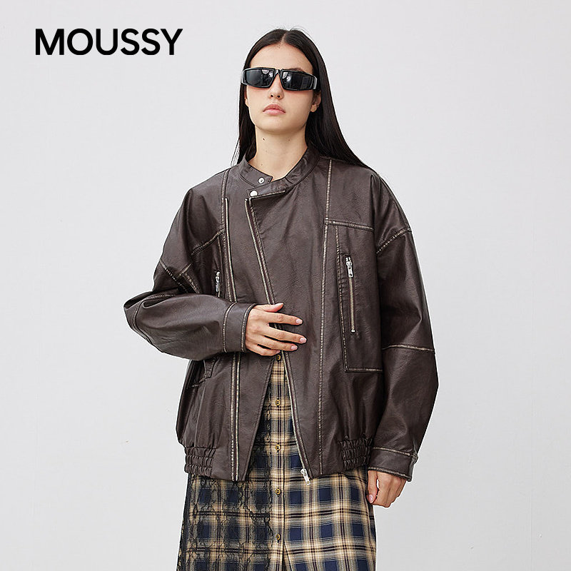 moussy 2025秋季新品街头潮酷风口袋拉链皮衣外套女028IAA30-1027
