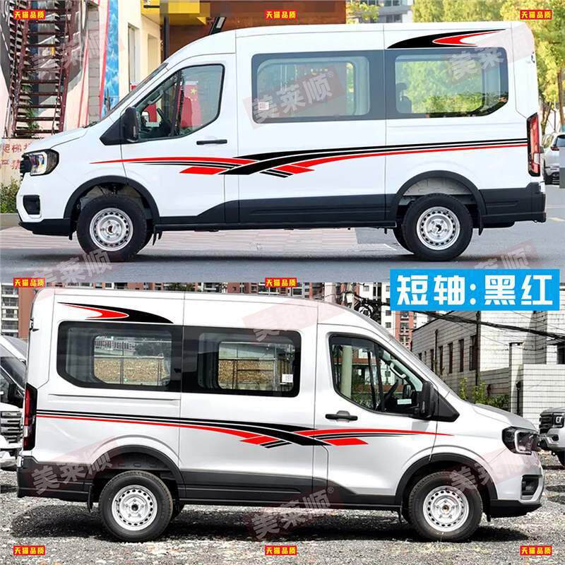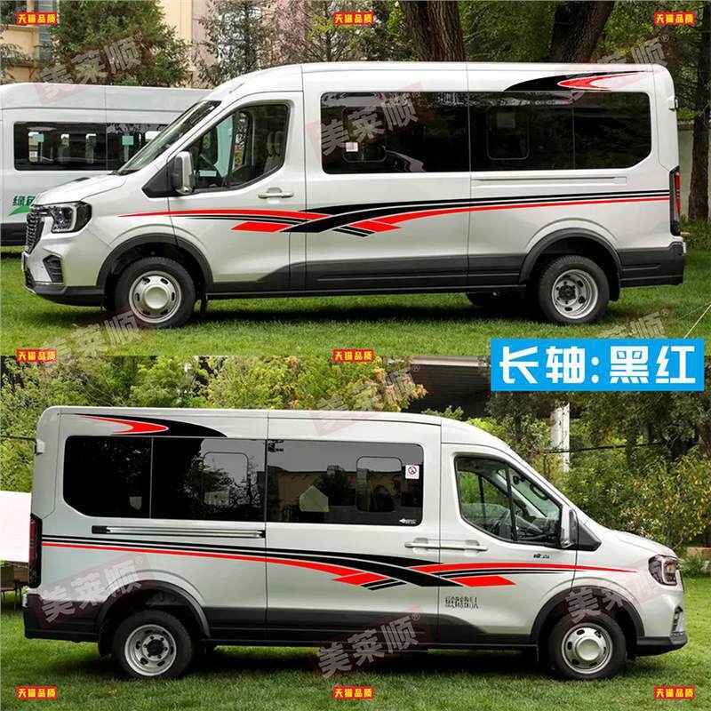 适用江铃福特全顺T8车贴拉花新世代房车改装个性车身装饰彩条贴纸