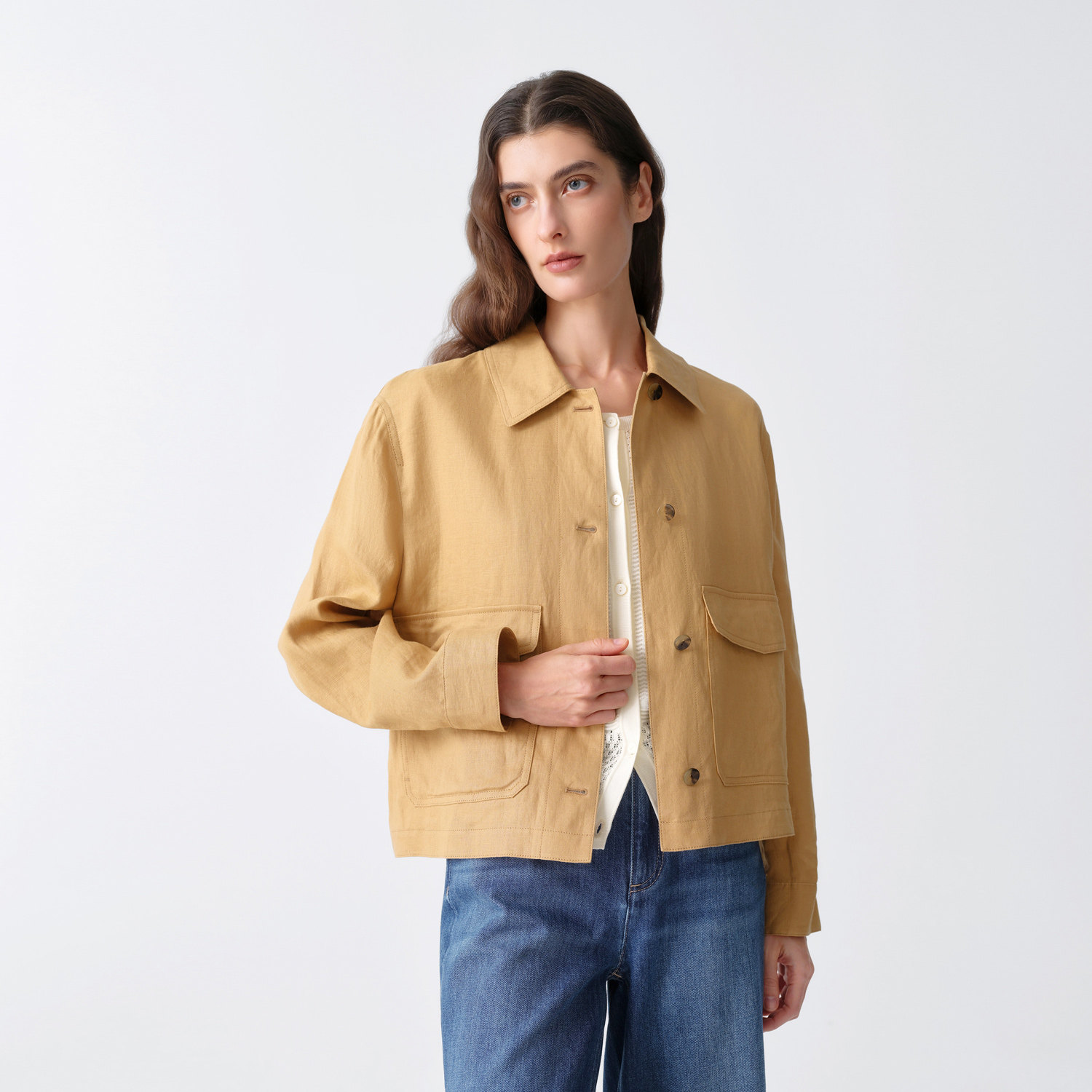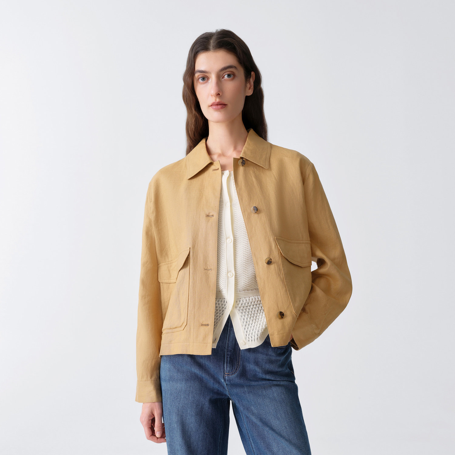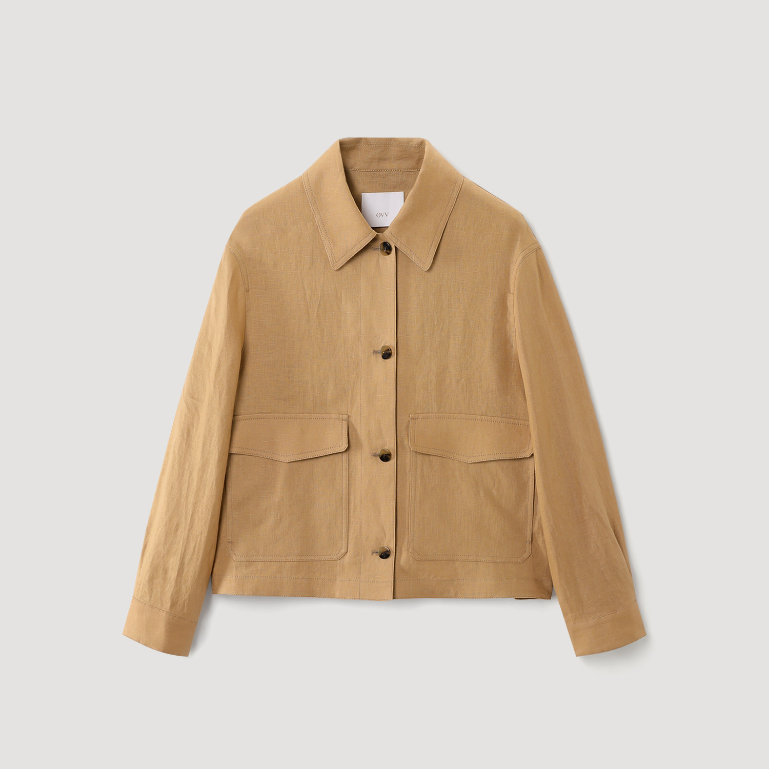 OVV2026春夏新款女装亚法式亚麻翻领经典版型休闲夹克