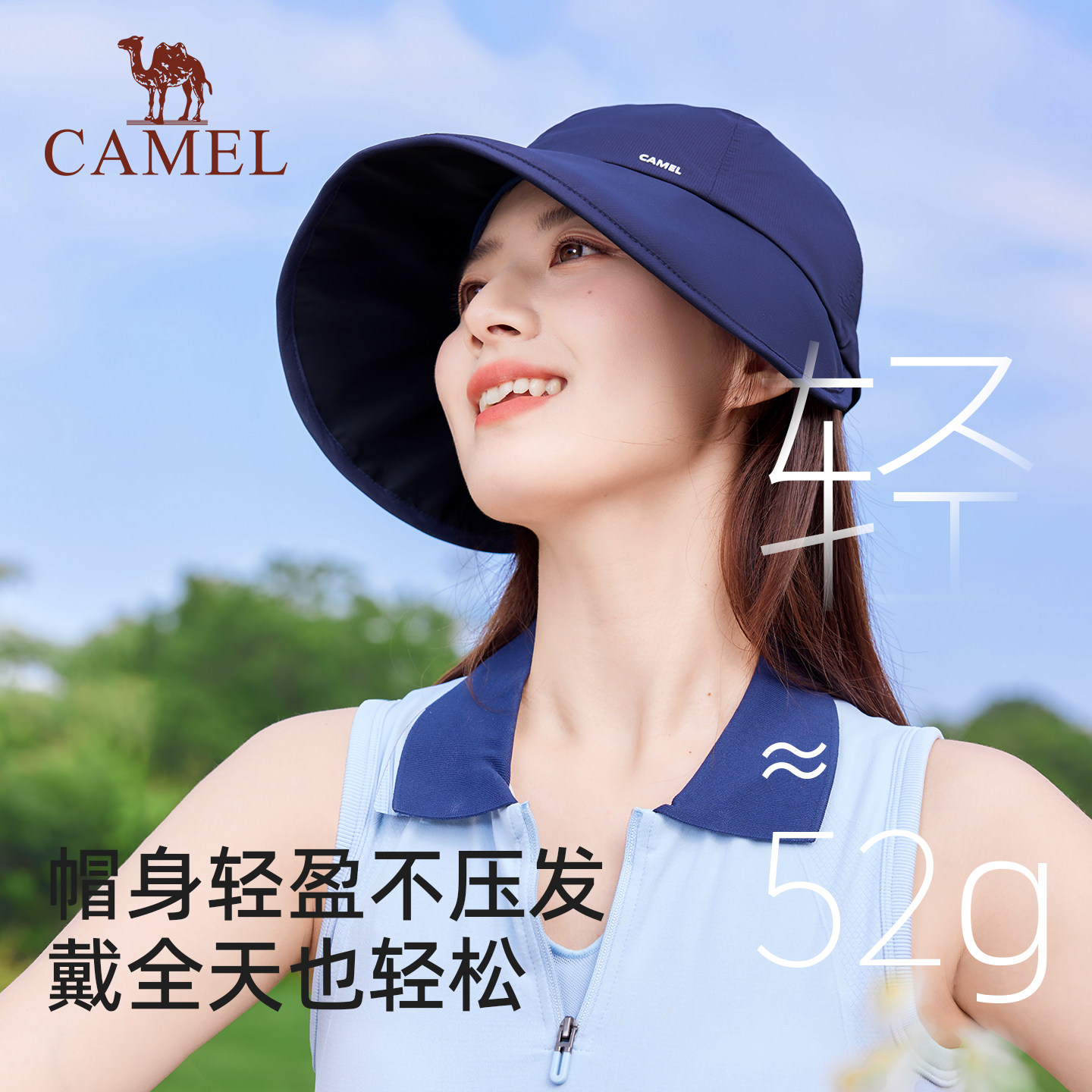 骆驼防晒鸭舌帽女UPF50+防紫外线新款大帽檐太阳帽黑胶遮阳防晒帽