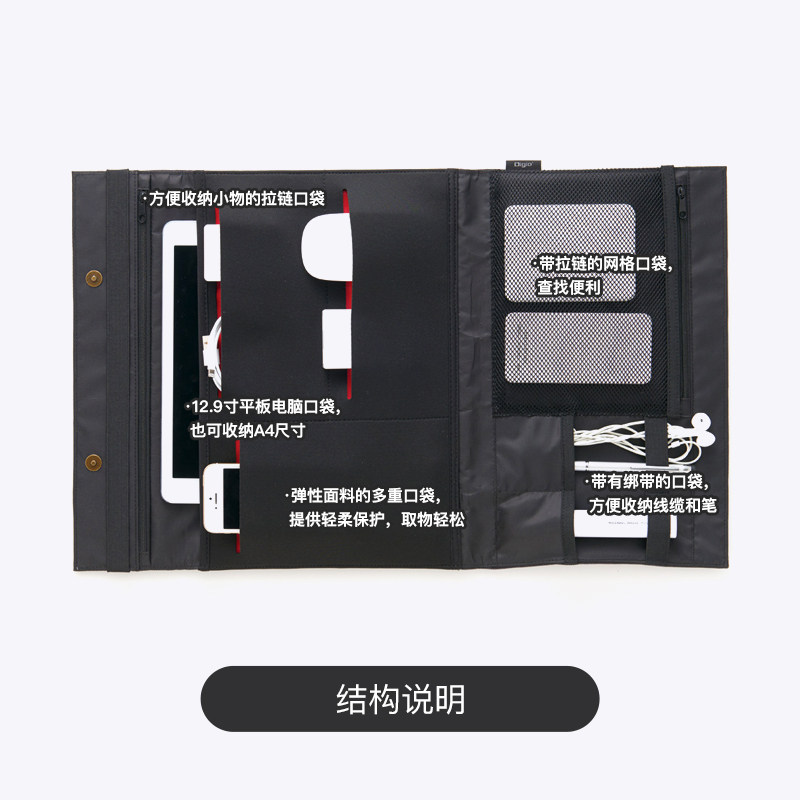 可内外反折 多层收纳结构 适用12.9寸ipad
