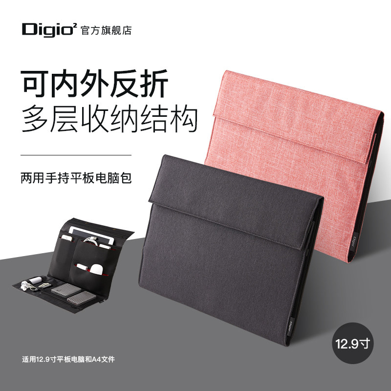 Digio2 12.9寸平板电脑笔记本多用途收纳包聚酯纤维适配ipadpro商务设计手拿包中包内胆内侧翻转