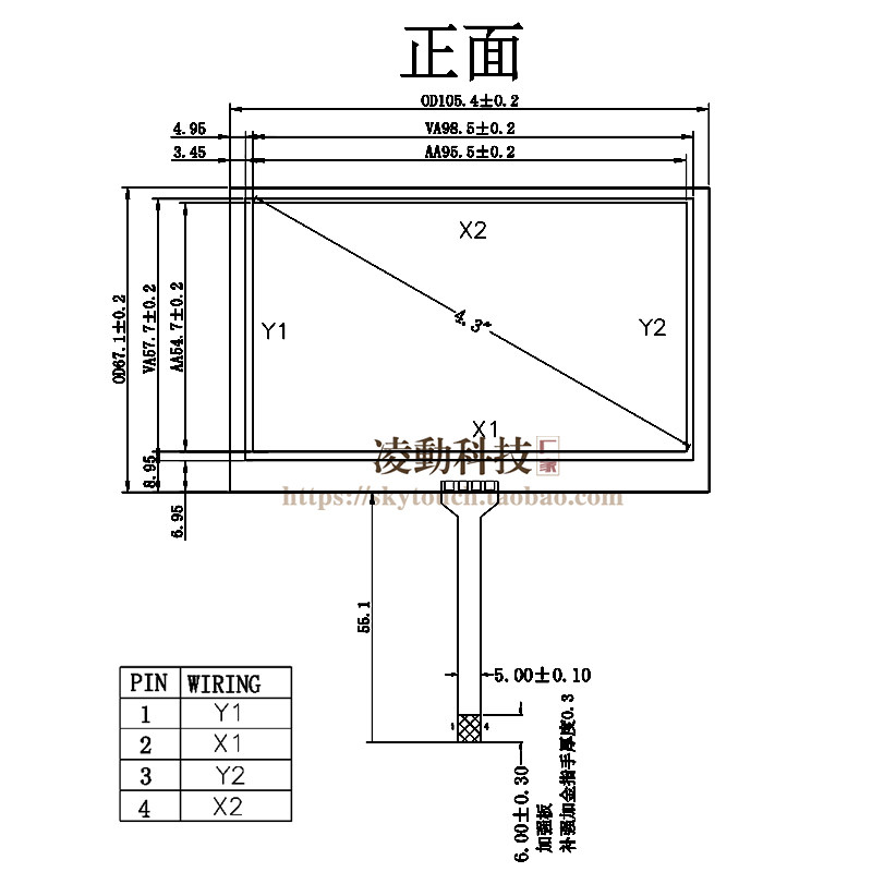 4.3寸触摸屏 工业安防楼宇监控手持电阻触控板外屏105*67 可定制
