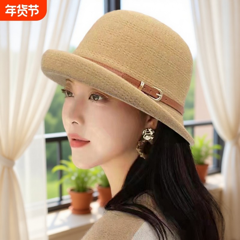 时尚卷边礼帽英伦复古渔夫帽女针织帽子秋冬季圆顶保暖盆帽女洋气