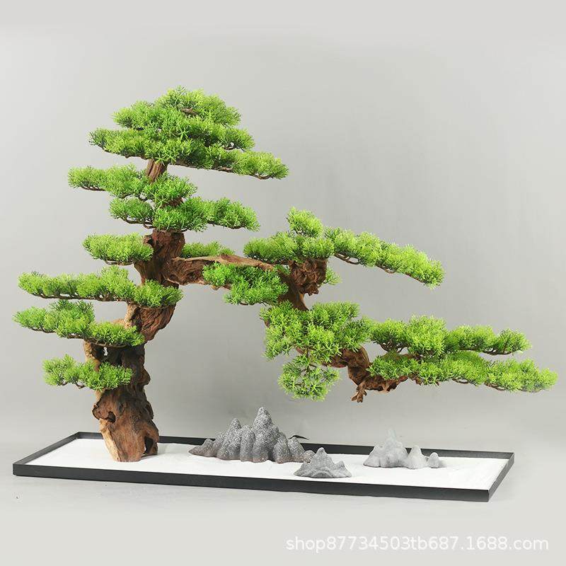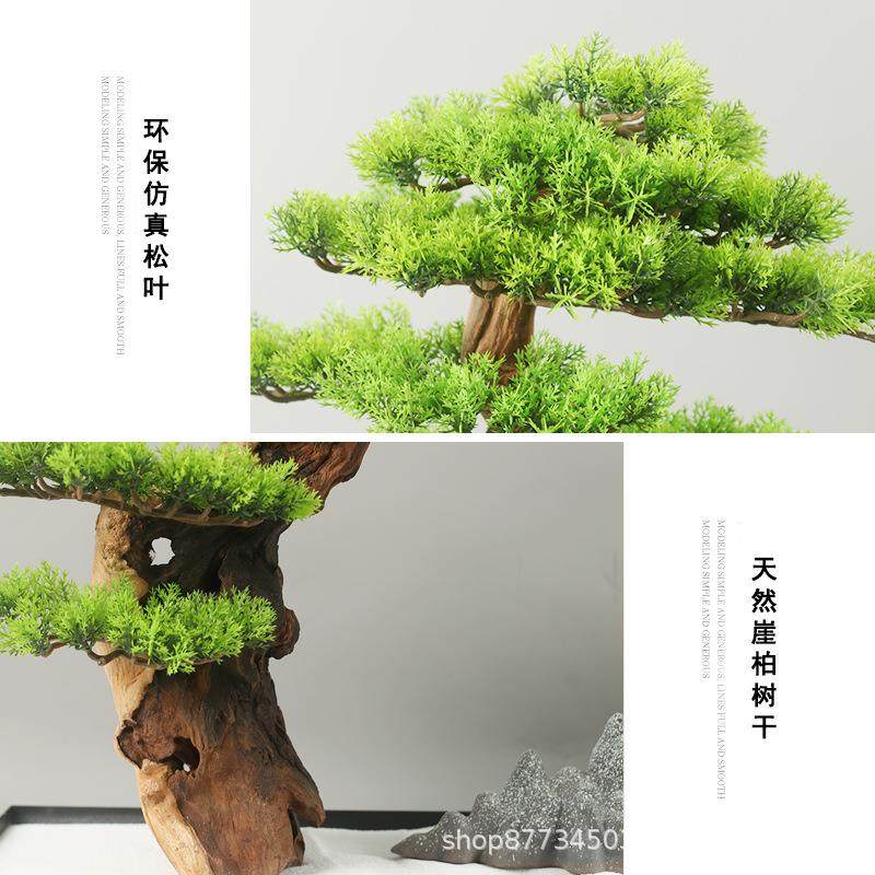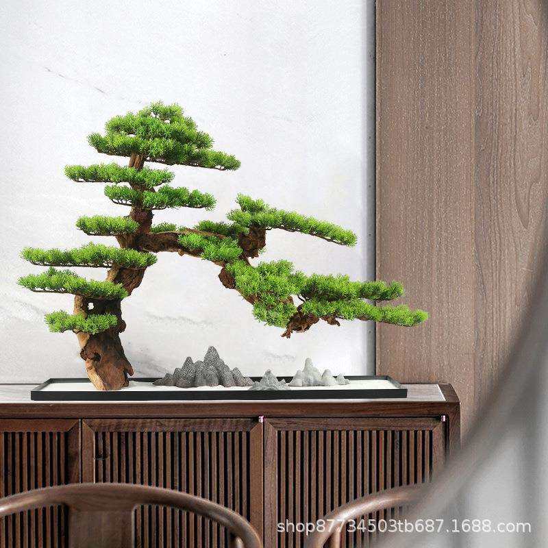 新中式仿真禅意迎客松玄关桌客厅茶室茶楼装饰品日式绿植盆景摆件