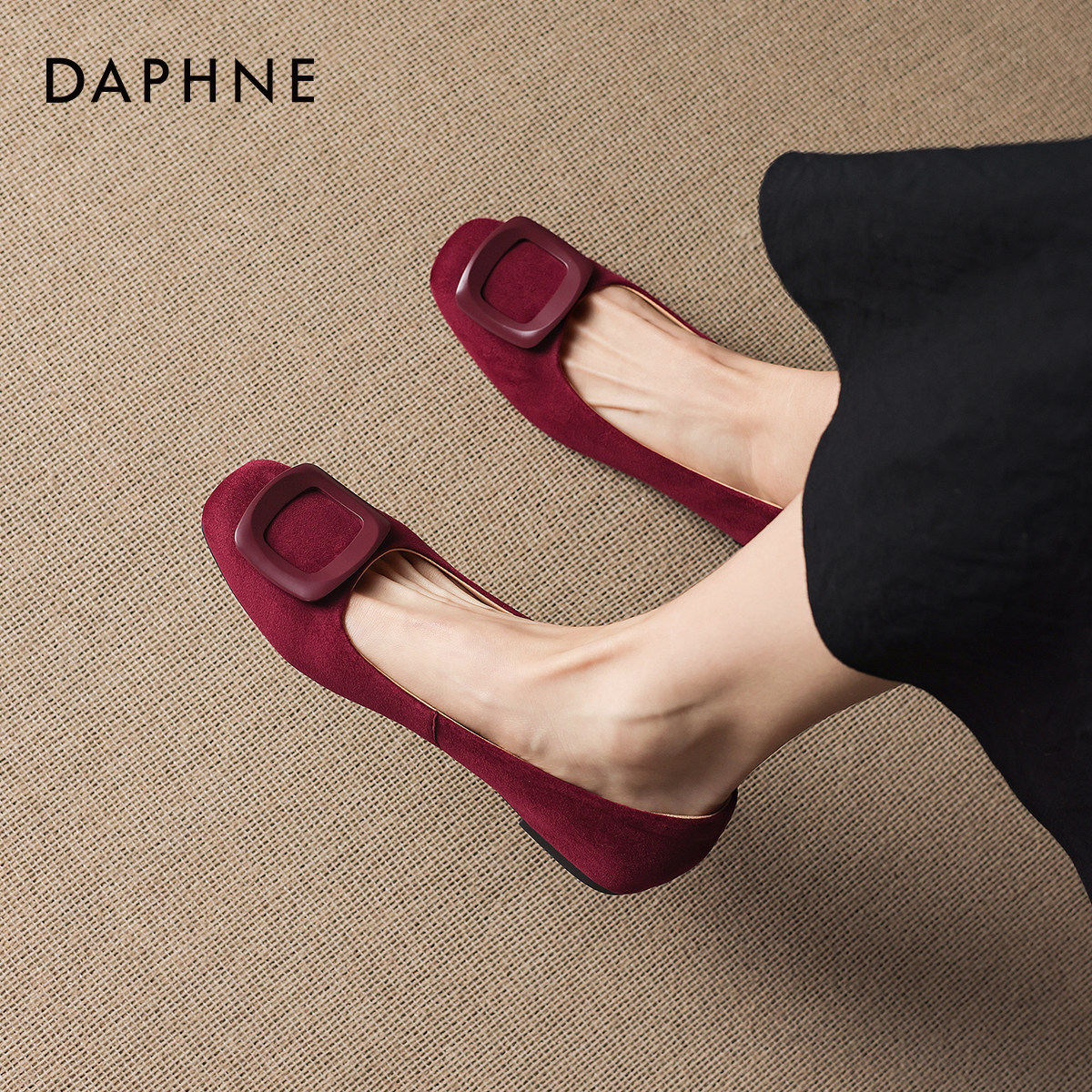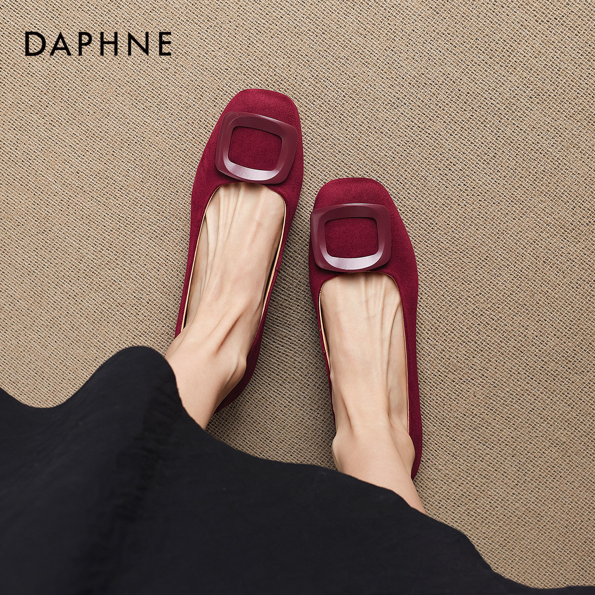 达芙妮红色平底单鞋女2026新款春季法式浅口女鞋配裙子婚鞋豆豆鞋