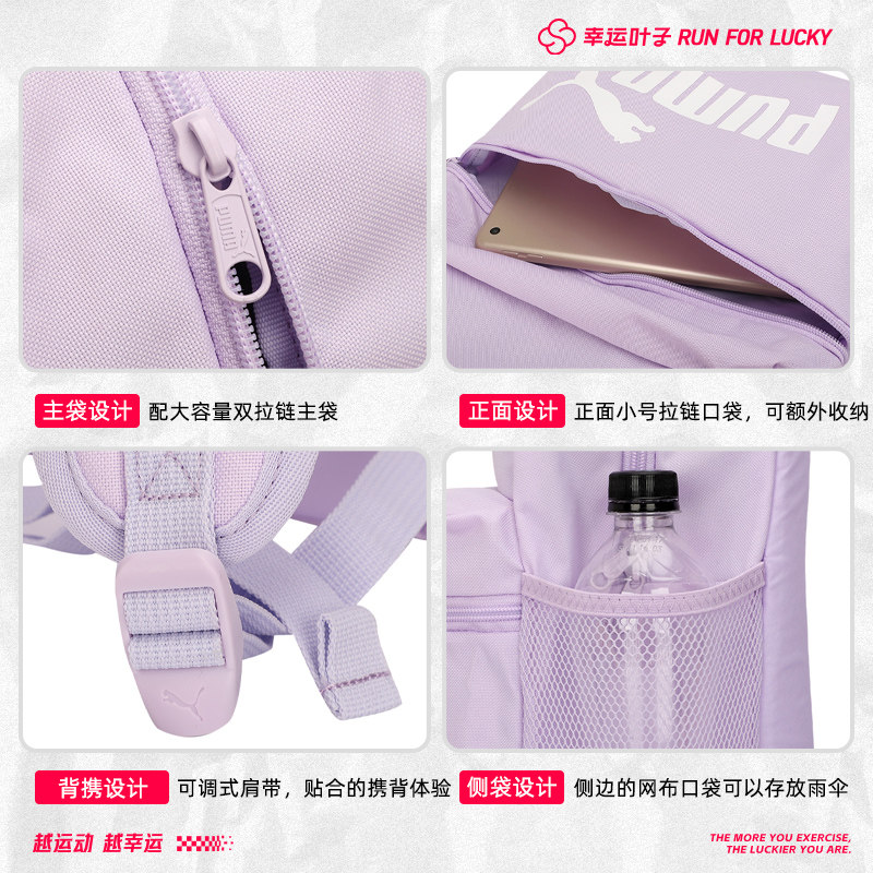 PUMA彪马背包男包女包春季新款紫色双肩包运动包小学生书包075487