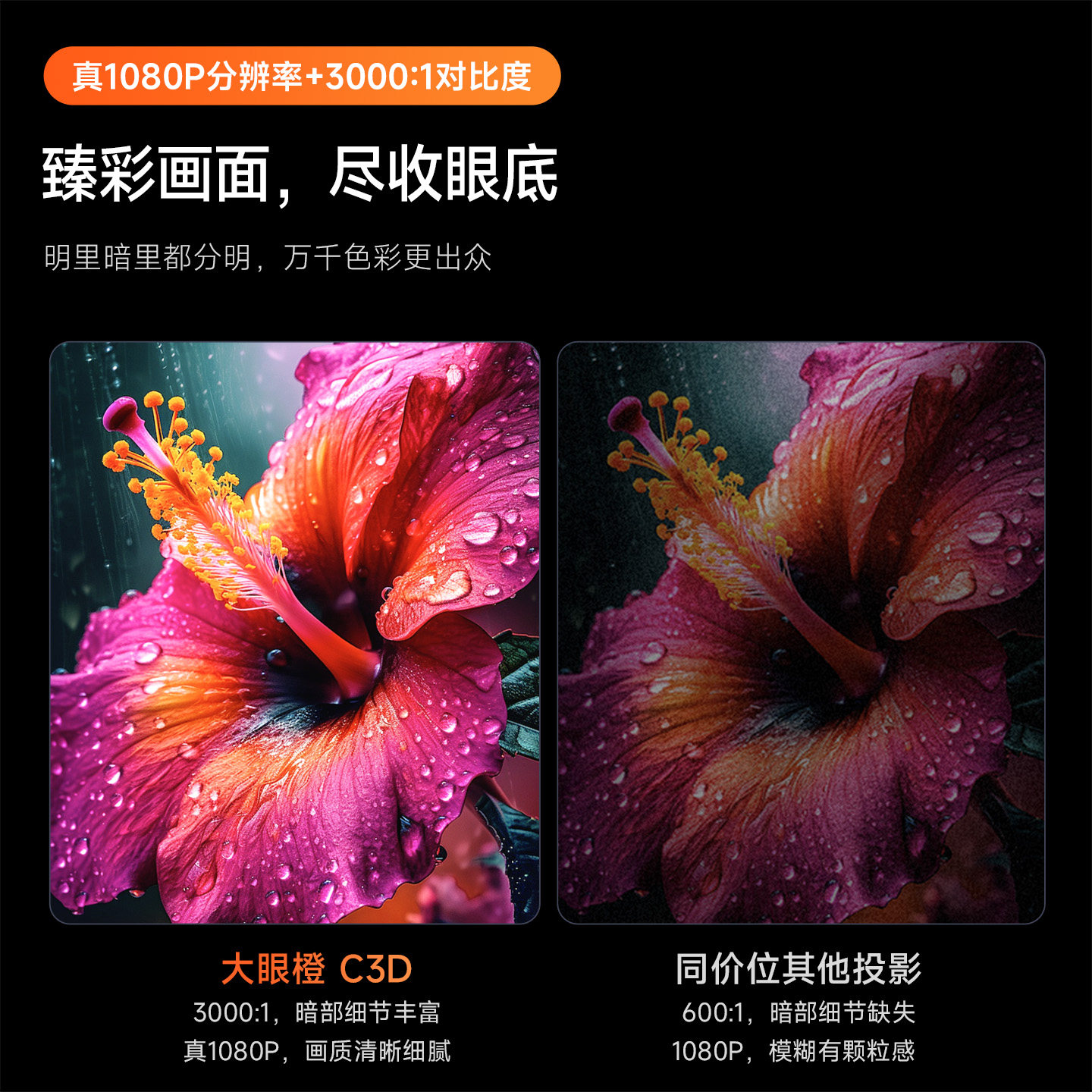 【咨询优惠活动价】大眼橙C3D云台高亮版投影仪家用卧室客厅1080P高清智能轻薄投影机投屏学生宿舍家庭影院