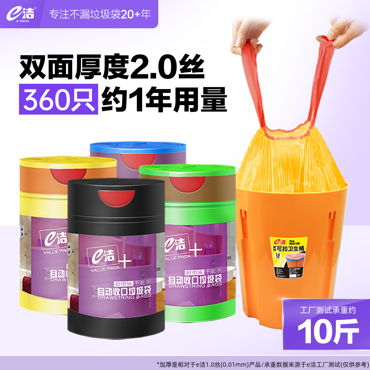e洁360只垃圾袋加厚自动收口家用手提式宿舍用抽绳塑料袋量贩装