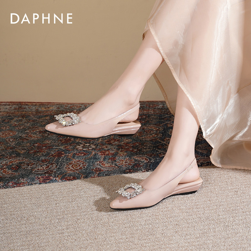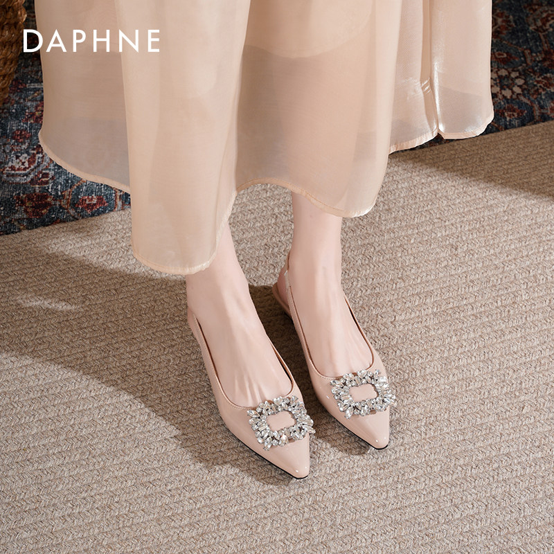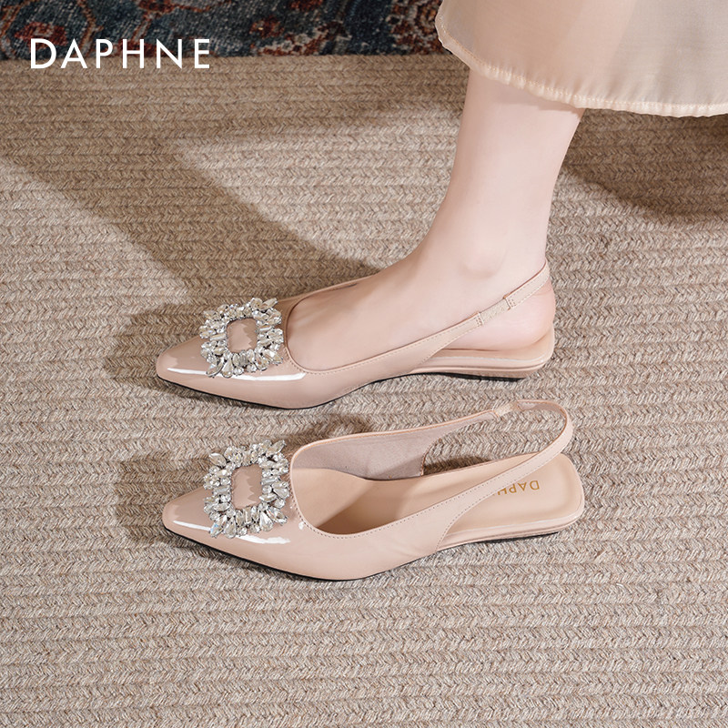 达芙妮裸色包头凉鞋女2026新款夏季法式水钻凉拖鞋尖头后空单鞋女