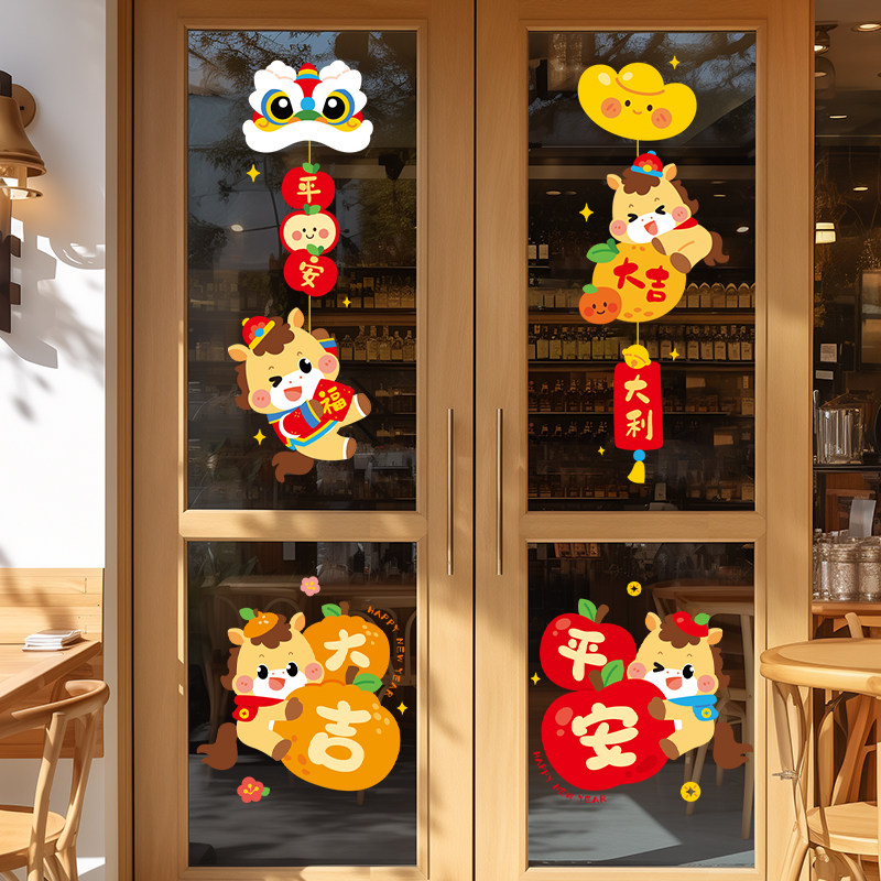 2026新年窗花马年装饰新款玻璃门贴纸静电橱窗贴春节氛围布置贴画
