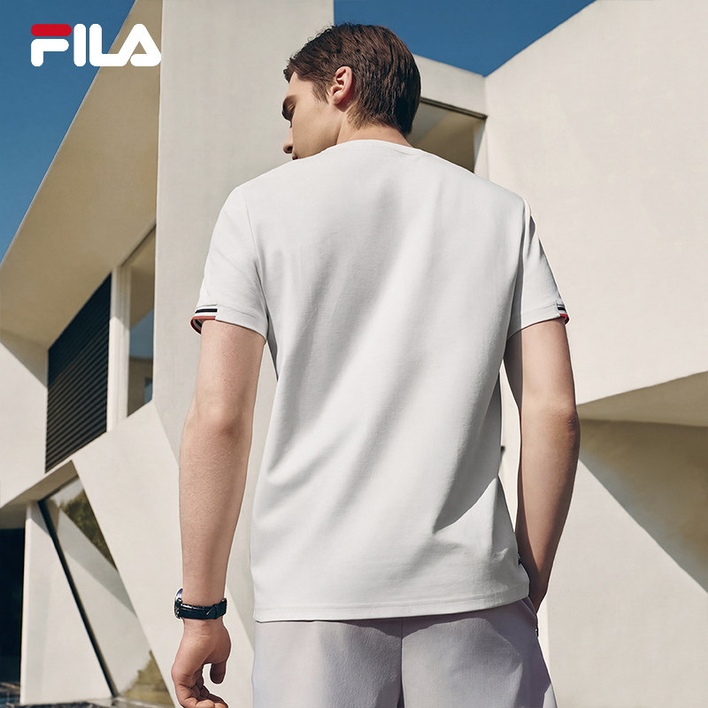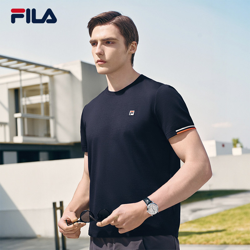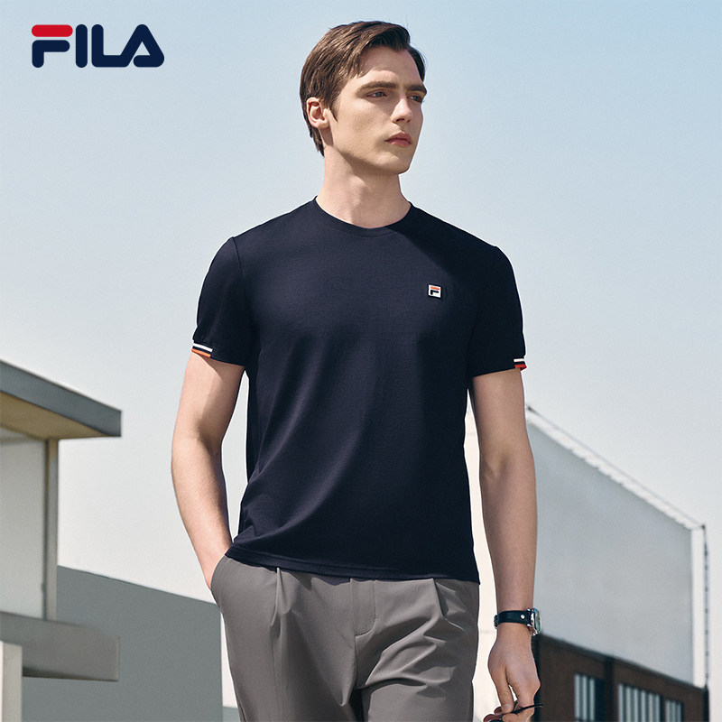 FILA斐乐短袖T恤男士夏装商务休闲透气宽松质感简约内搭黑上衣