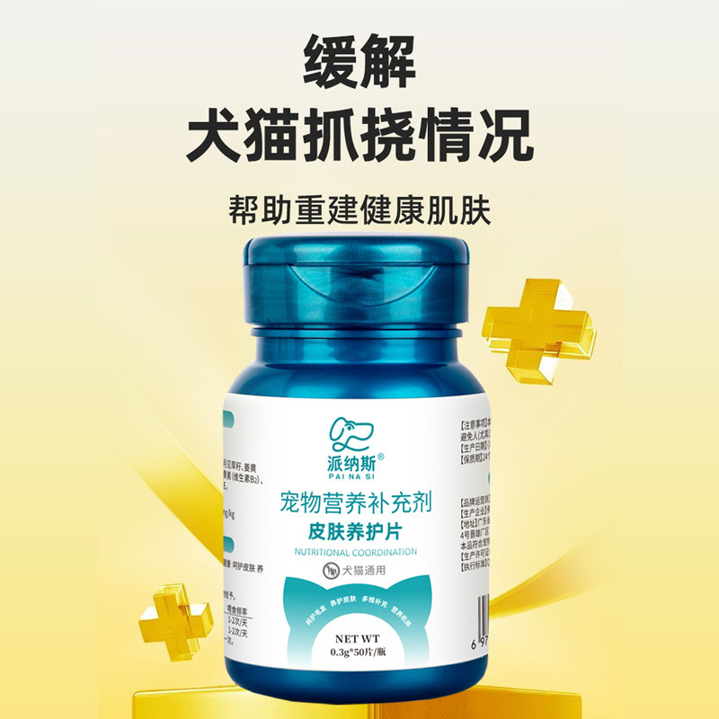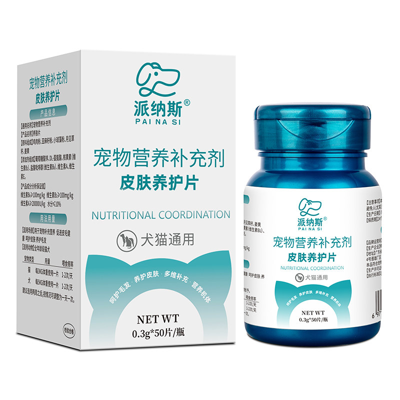 派纳斯宠物皮肤养护片猫咪呵护毛发营养补充狗狗皮肤环境舒缓口服