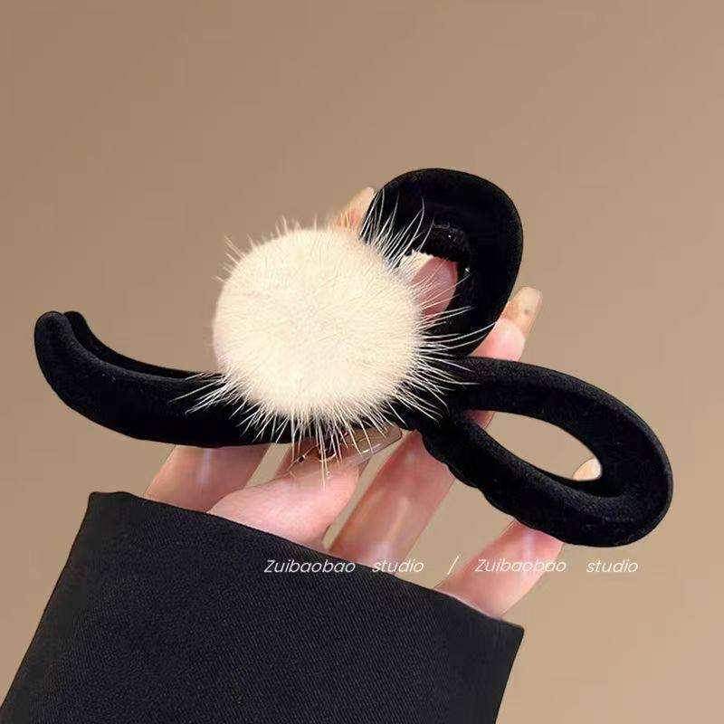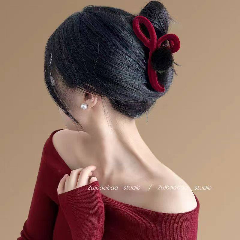 新年冬季毛毛抓夹新款红色高级丝绒鲨鱼大号夹子头饰后脑勺发夹
