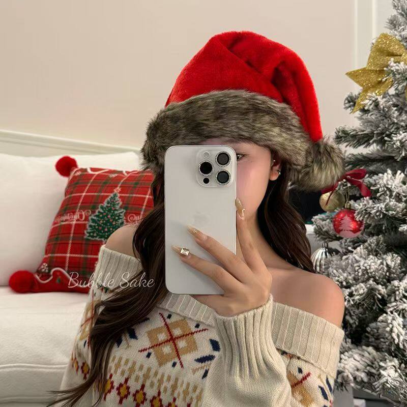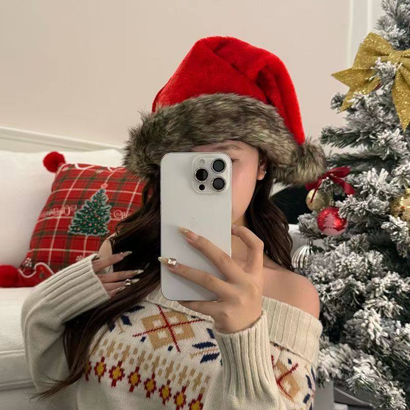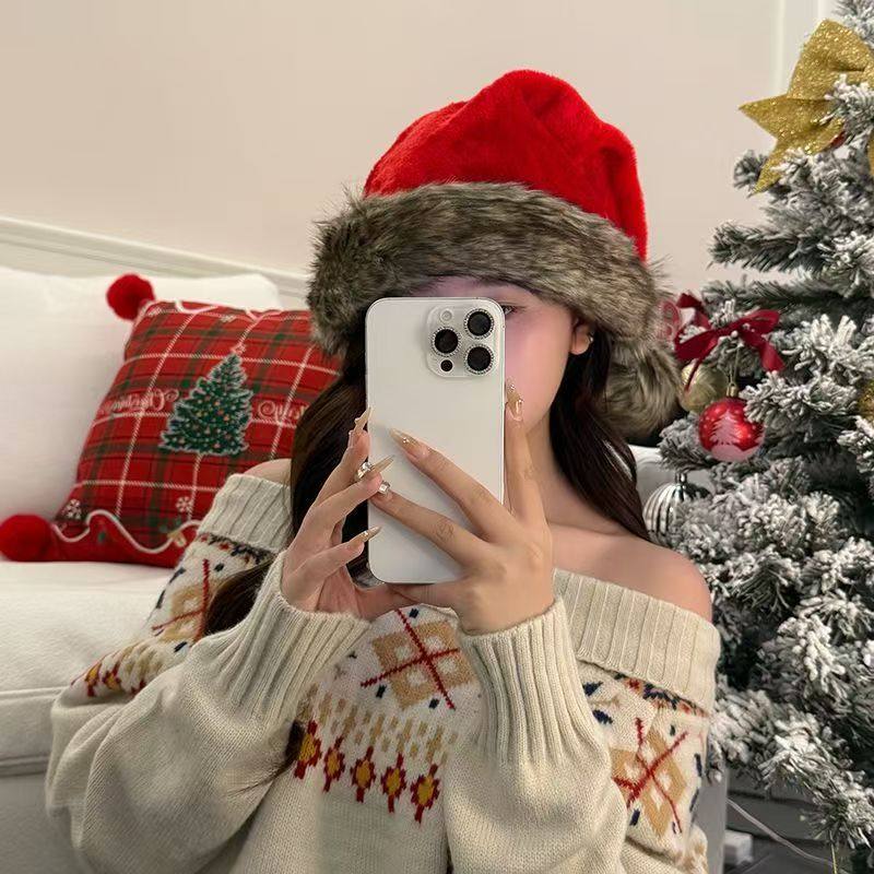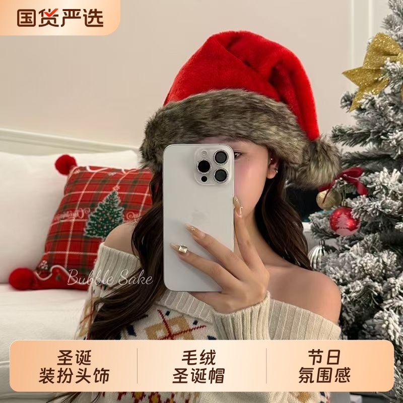 小野圣诞棕色毛绒圣诞帽穿搭装扮头饰拍照道具新款秋冬配饰氛围