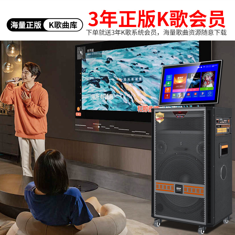 爱博声户外广场舞音响带显示屏大功率家用KTV移动一体机进口音箱