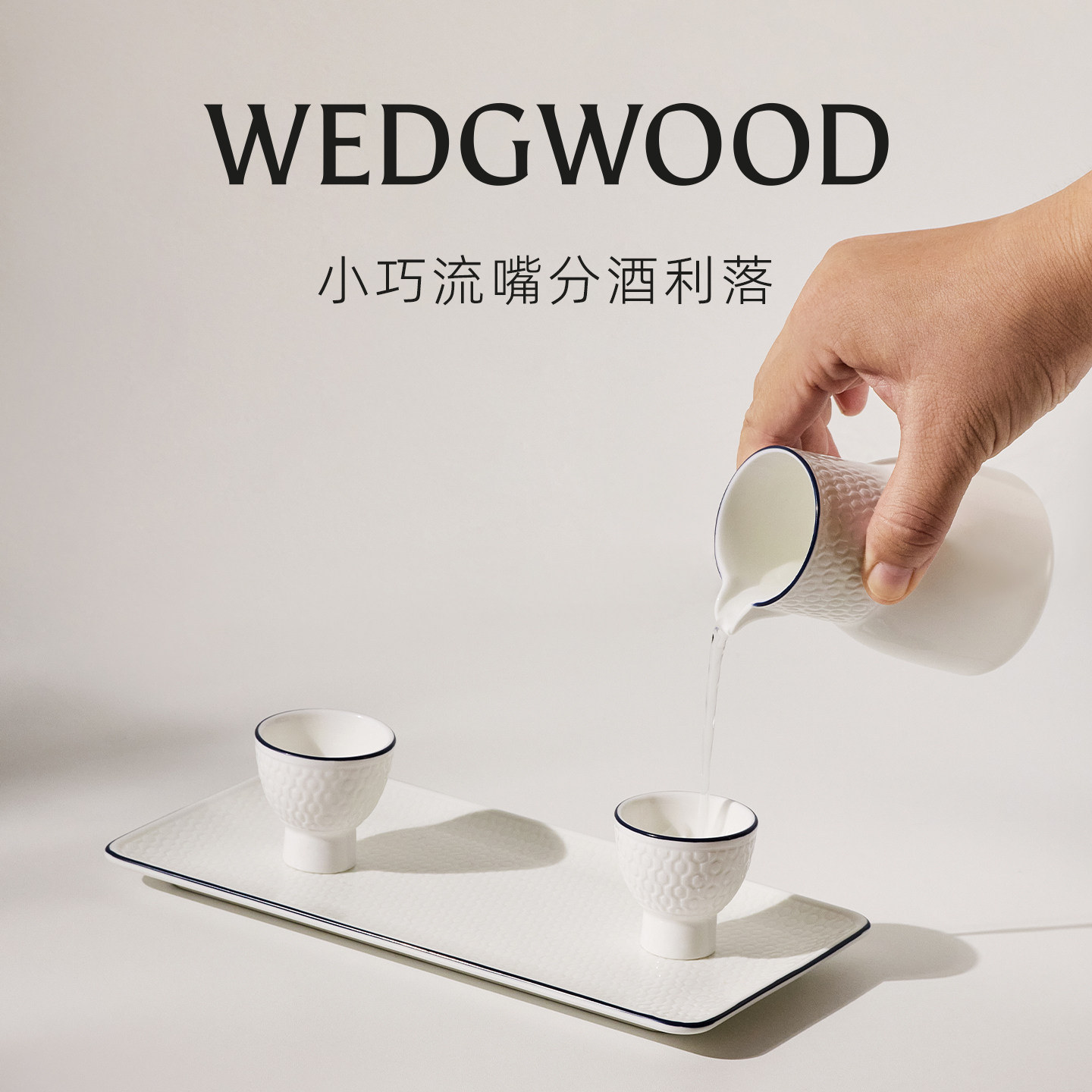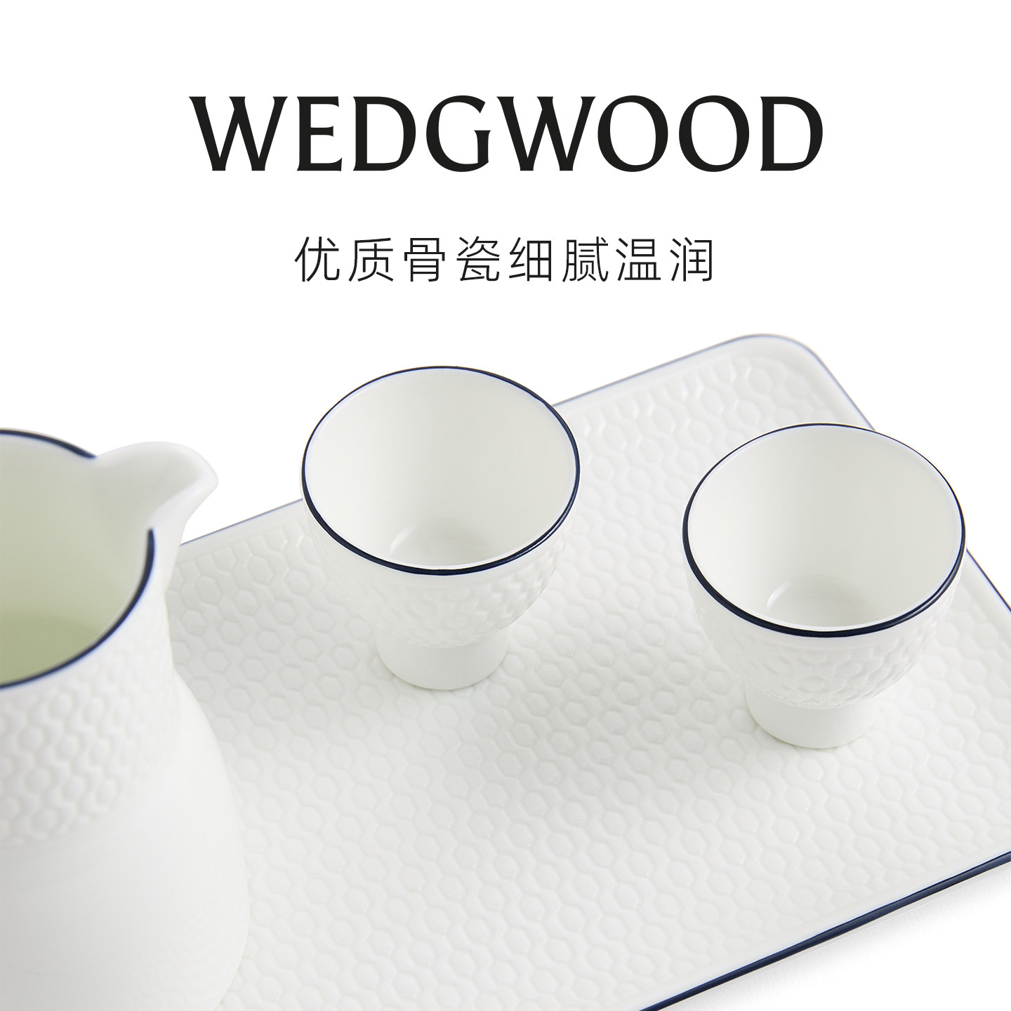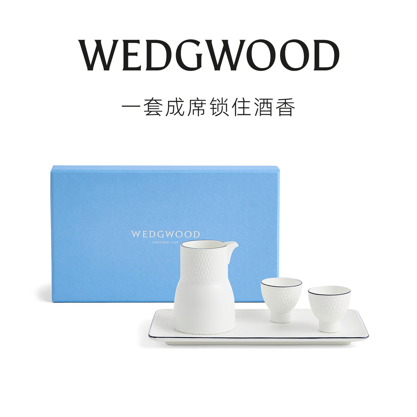WEDGWOOD威基伍德蓝调几何白酒杯套装骨瓷家用酒具高端礼盒送礼