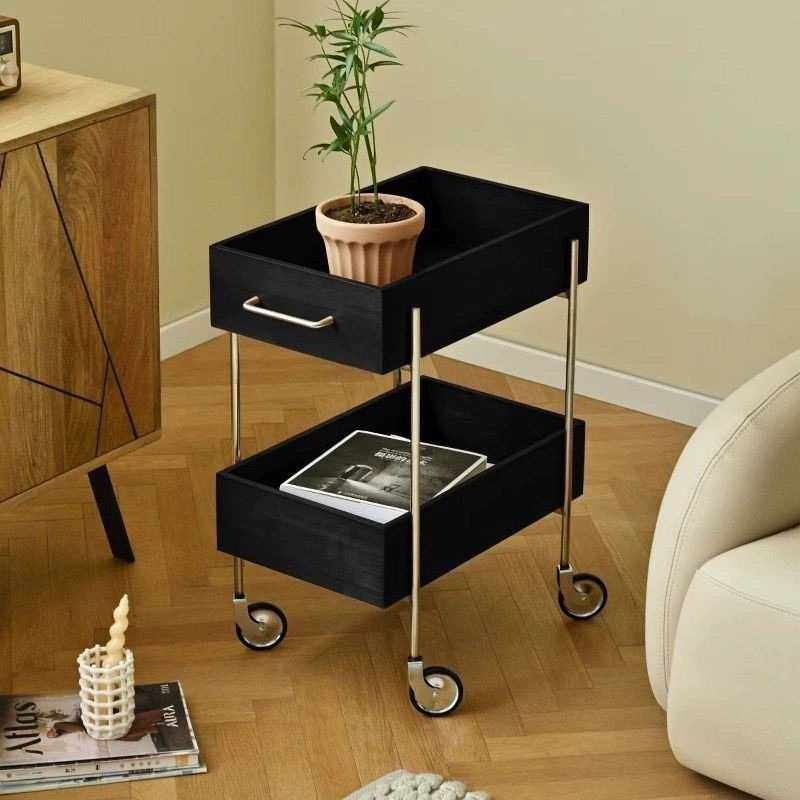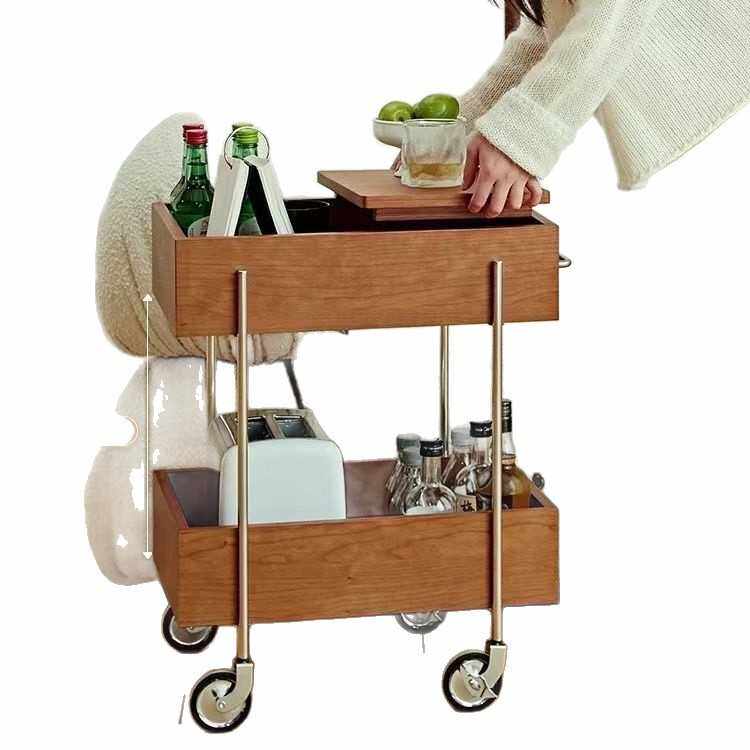 实木推车客厅沙发家用多层收纳柜储物手推移动零食置物架古风边几