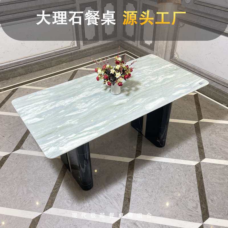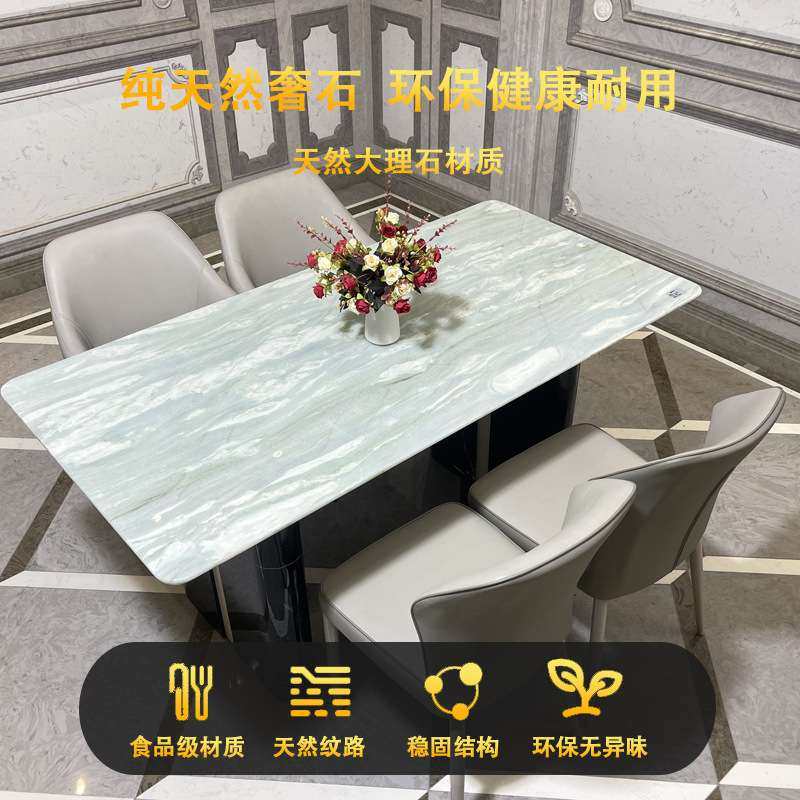 天然大理石长餐桌轻奢现代简约防渗透易清洁奢石饭桌家用宴会石桌