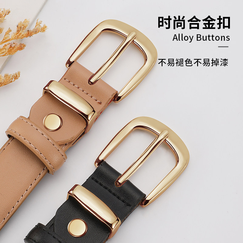 稻草人真皮皮带女士腰带时尚潮配牛仔裤带简约休闲百搭黑色高级感