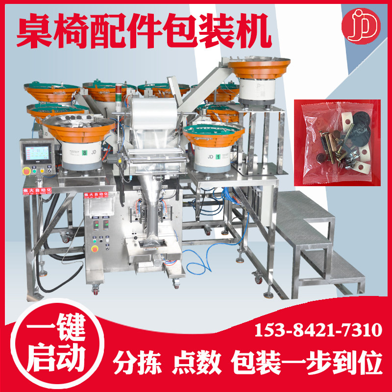 焦大背封立式包装机多物料振动盘混装打包机铆钉螺丝垫片打包机器