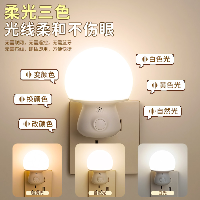新款智能语音小夜灯声控灯家用卧室睡眠灯感应灯插电床头灯遥控灯