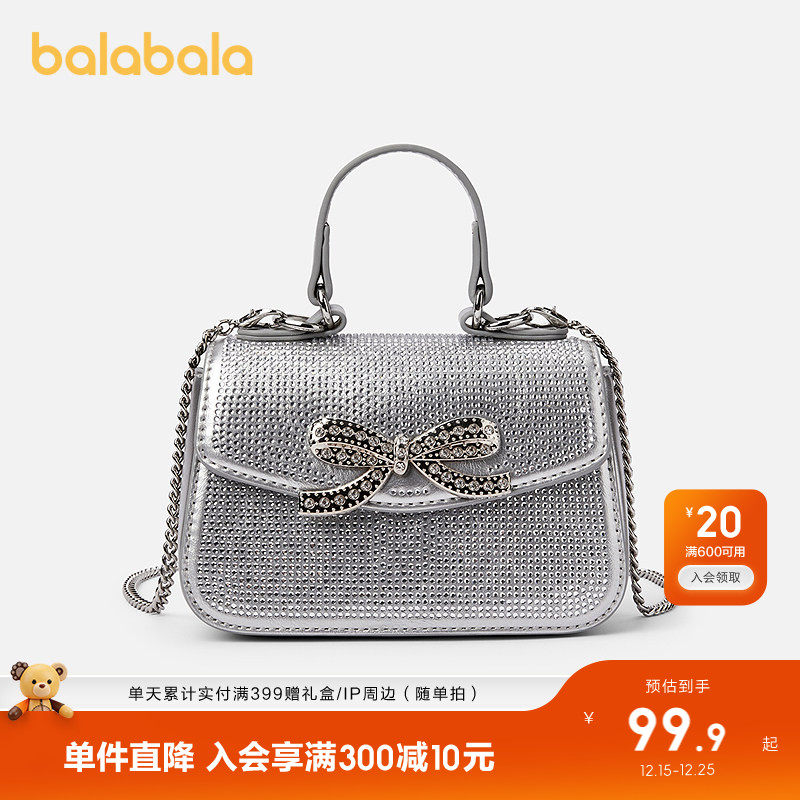 巴拉巴拉儿童休闲包女童手提方包蝴蝶结装饰时尚精致潮酷萌趣儿童