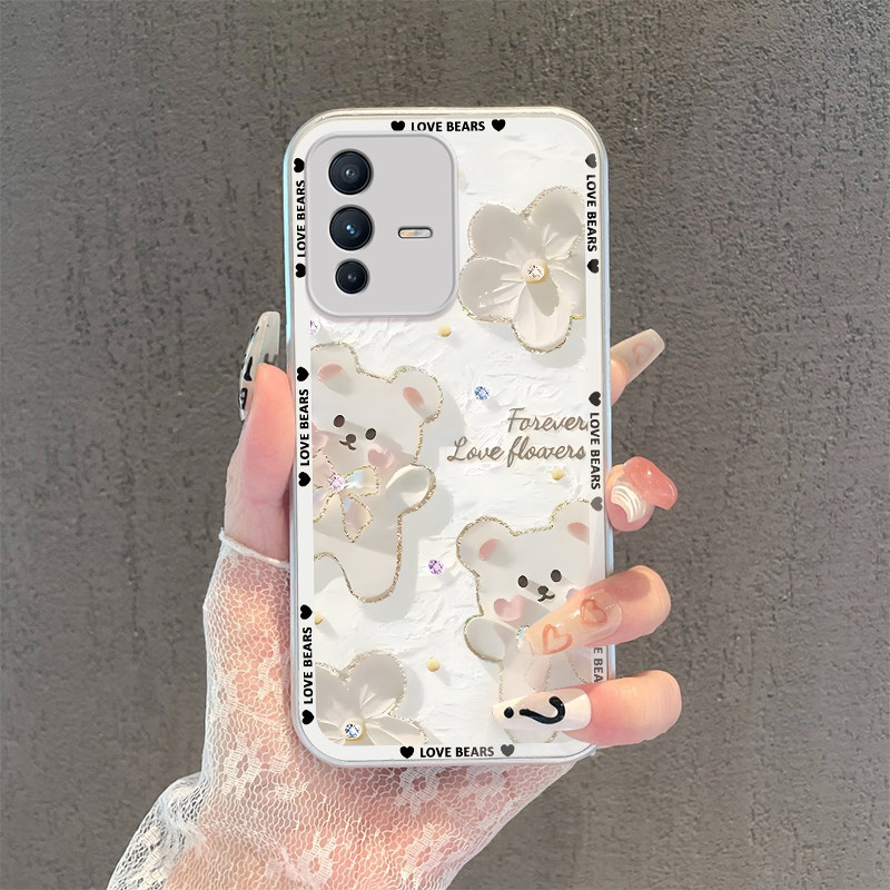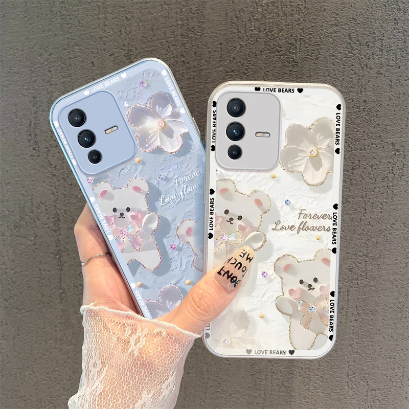 适用vivos12手机壳蝴蝶结小熊s12pro金属漆玻璃防摔高级感卡通女网红全包新款潮