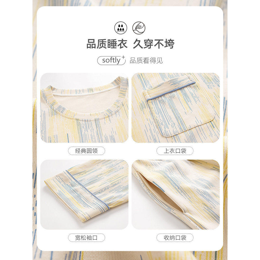 都市丽人睡衣男纯棉套头简约休闲风睡衣套装春秋款家居服可外穿