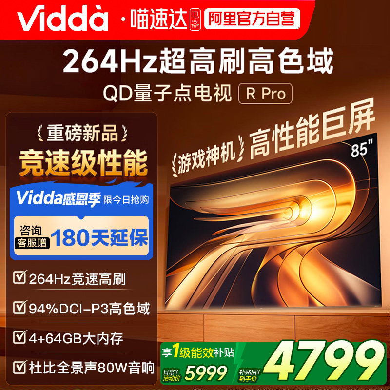 Vidda R Pro 85英寸 海信电视264Hz 4+64GB电视机以旧换新补贴122
