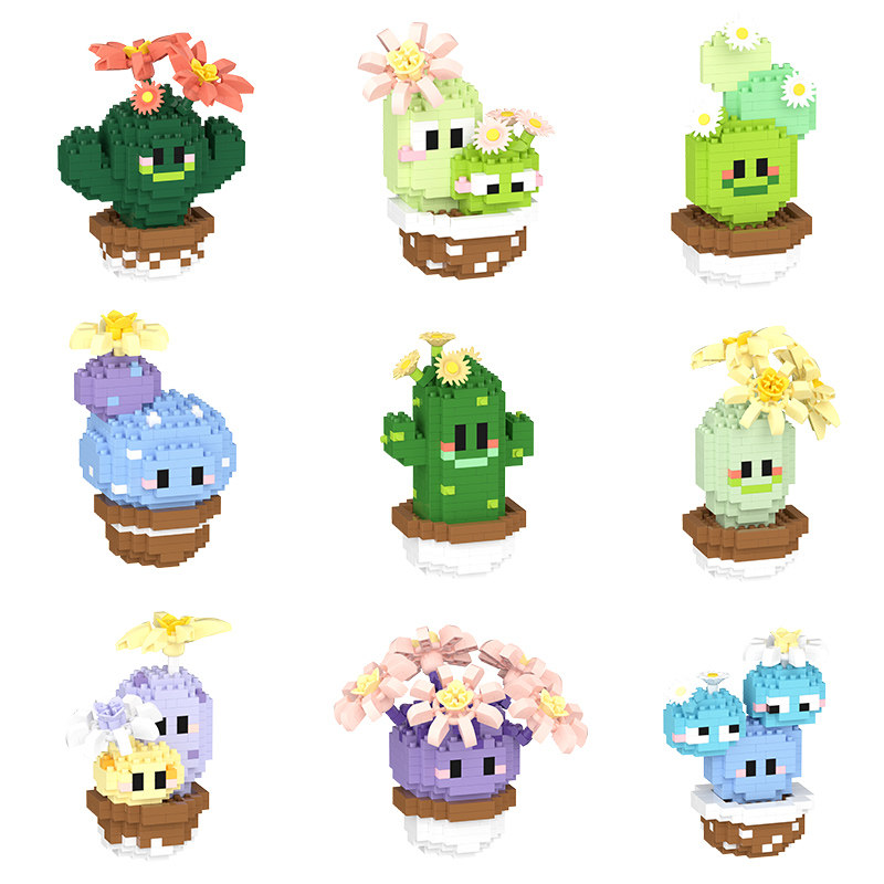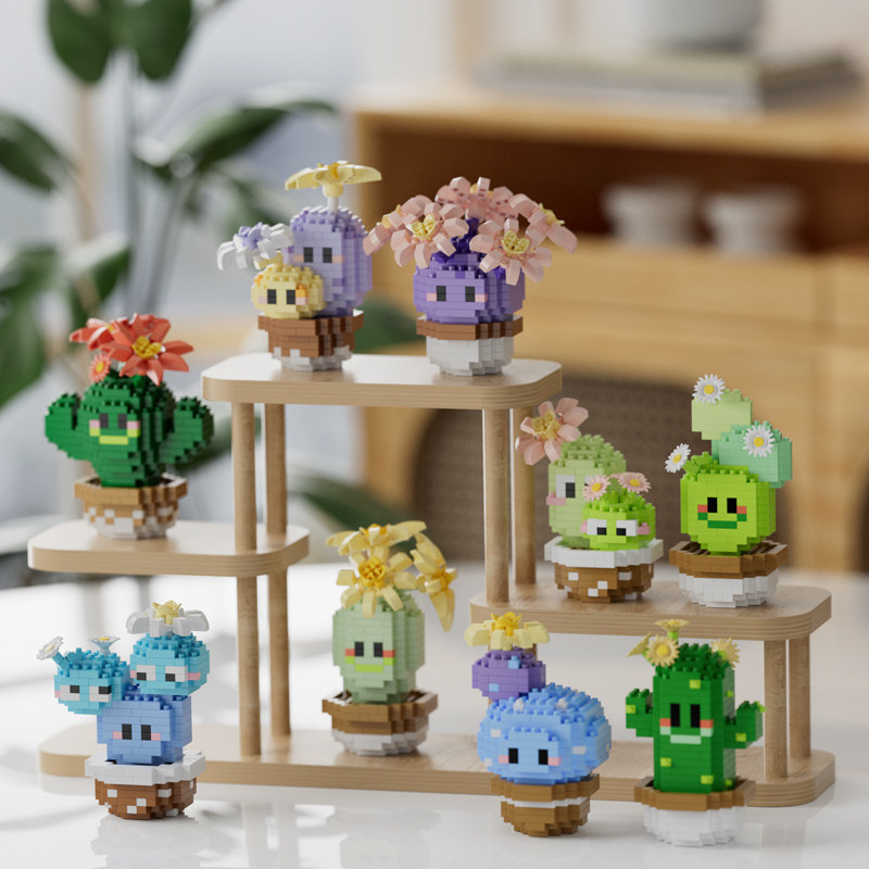 潮乐创儿童仿真多肉植物仙人掌积木益智拼装玩具盆栽摆件生日礼物
