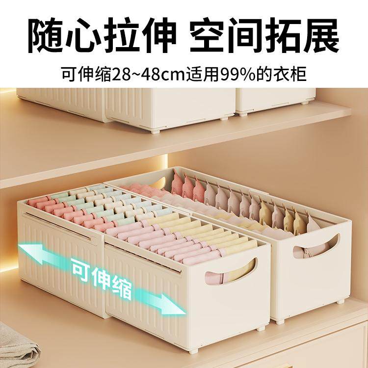 袜子收纳盒衣柜分隔分层伸缩抽屉长条窄盒神器内衣内裤分格收纳箱