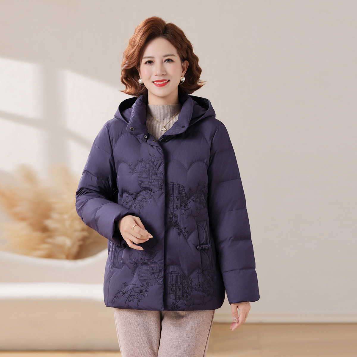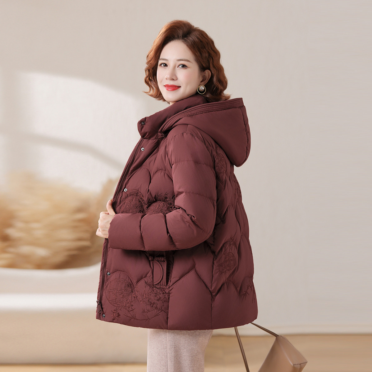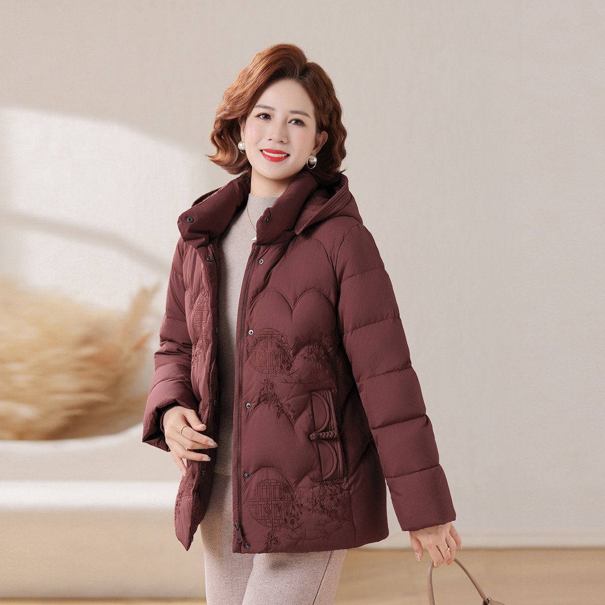 雪中飞2026春新款羽绒服女士新中式妈妈装国风暗花简约时尚中老年