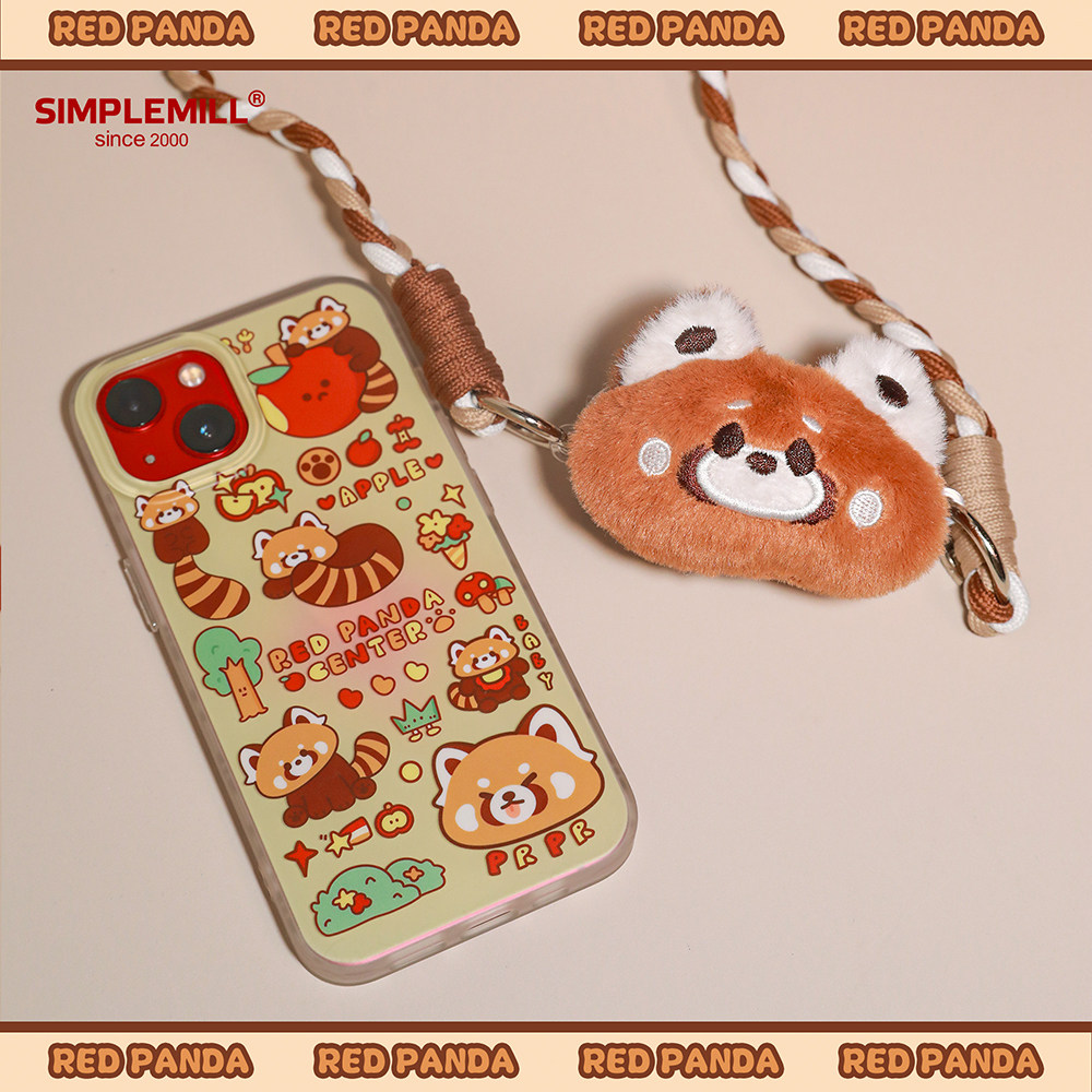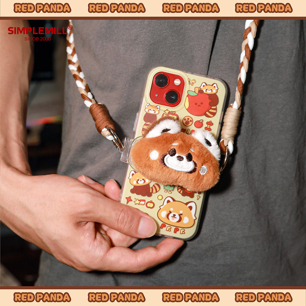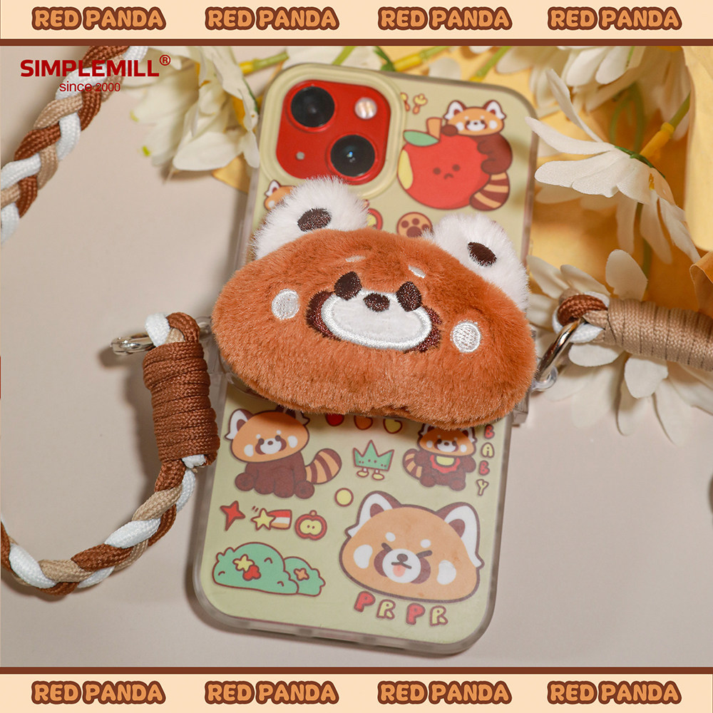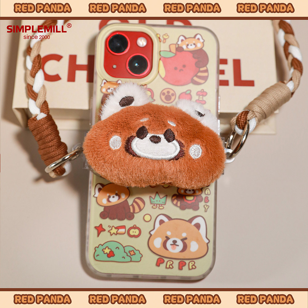 朴坊小熊猫毛绒手机背夹挂绳长款斜挂背带挂链挂件防丢可爱礼物