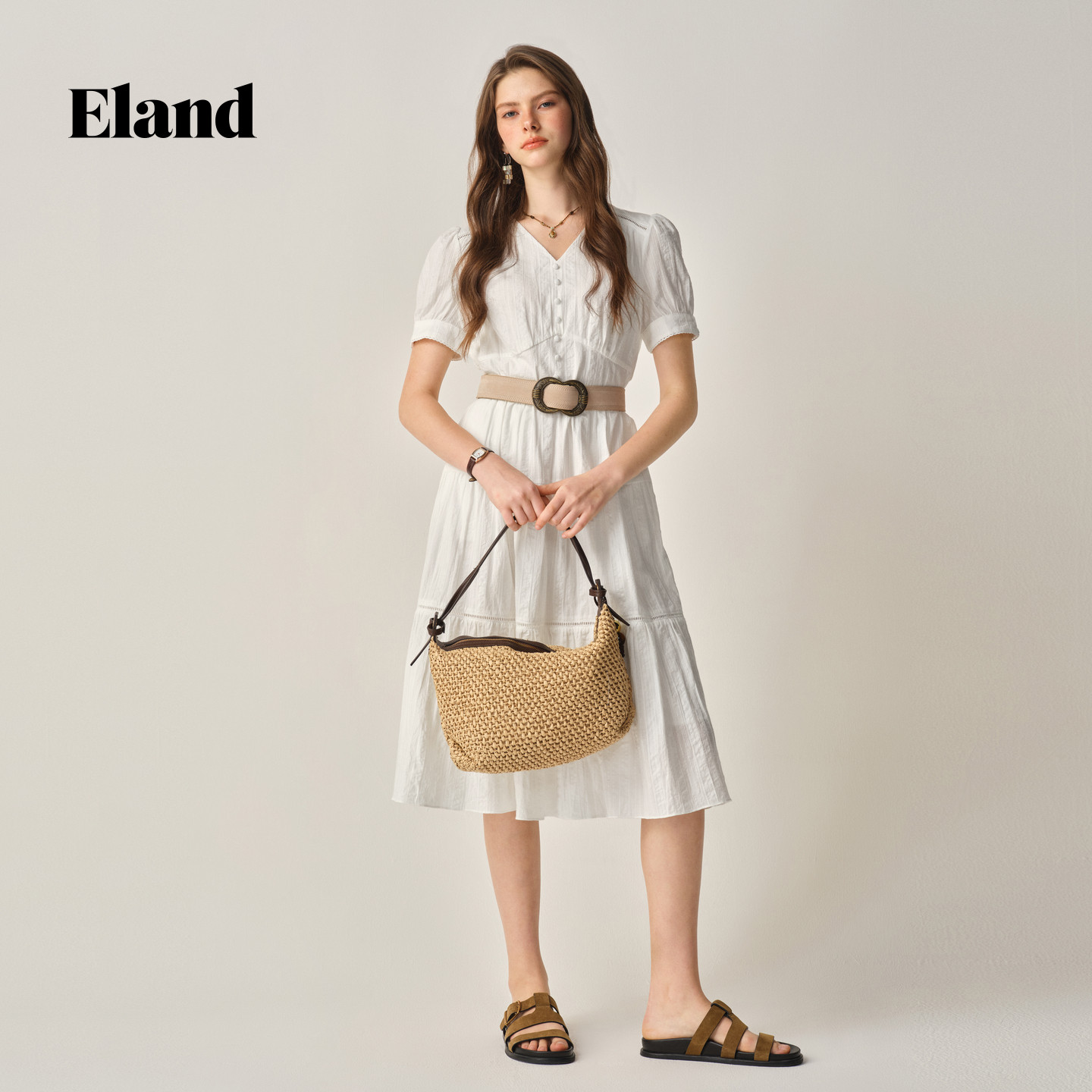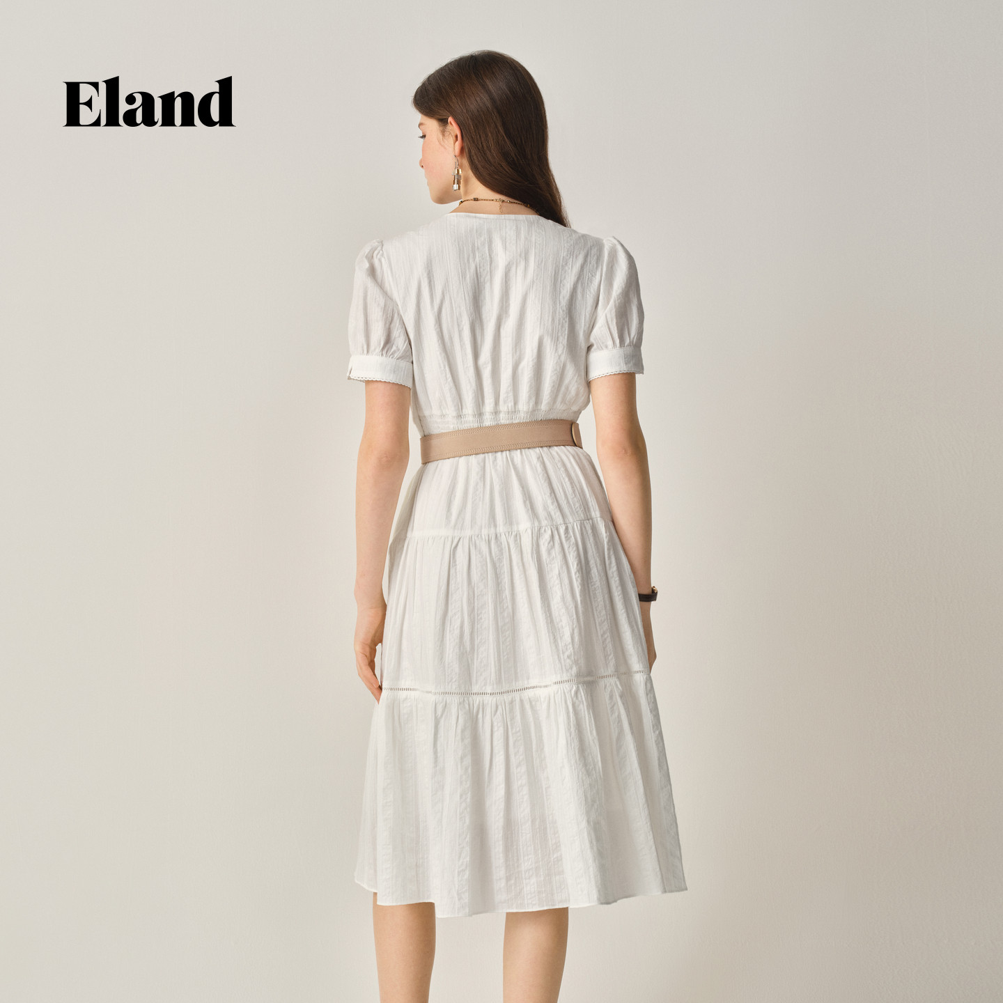 【梨花裙】Eland衣恋连衣裙女短袖收腰纯棉裙子2025冬季新款