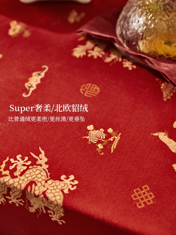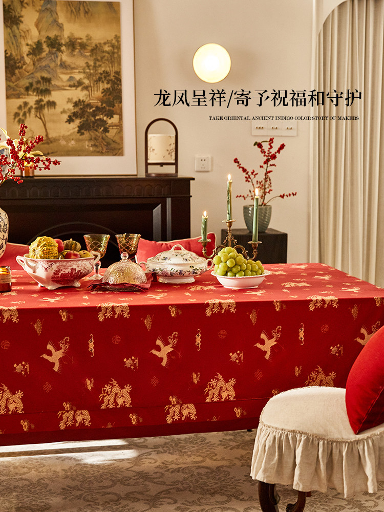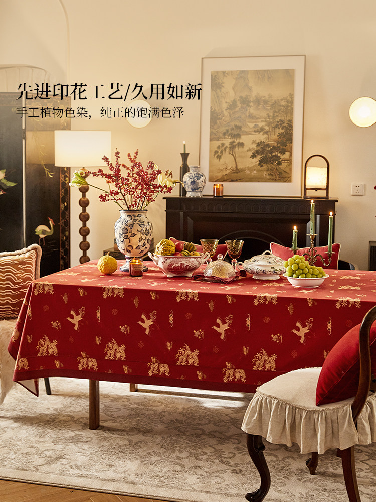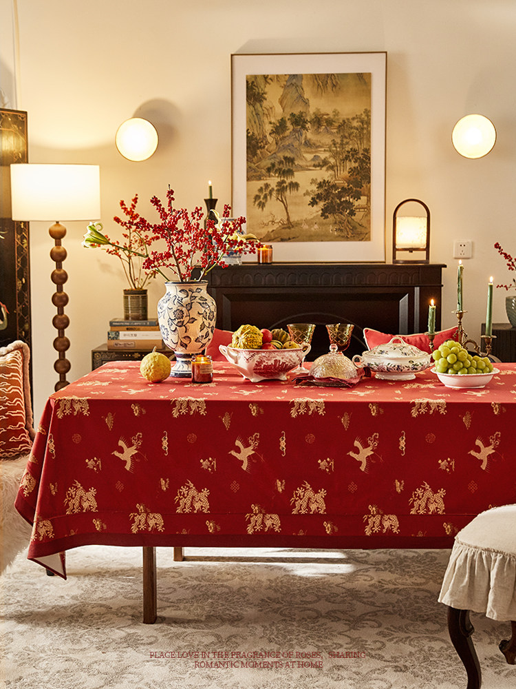 新中式节日氛围感桌布现代轻奢红色