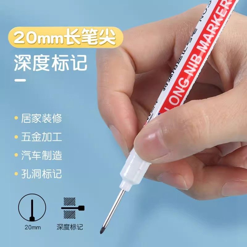 瓷砖地砖长头记号笔油性防水耐擦加长头打孔深孔细长记号笔