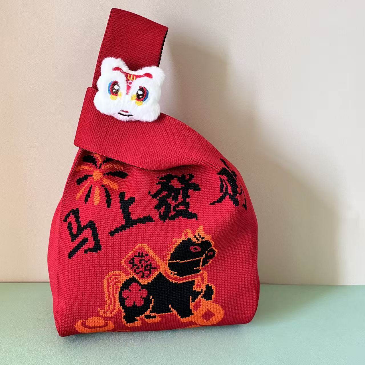 马年新年网红针织手腕包礼品袋喜庆伴手礼2026年春节福袋伴手礼袋