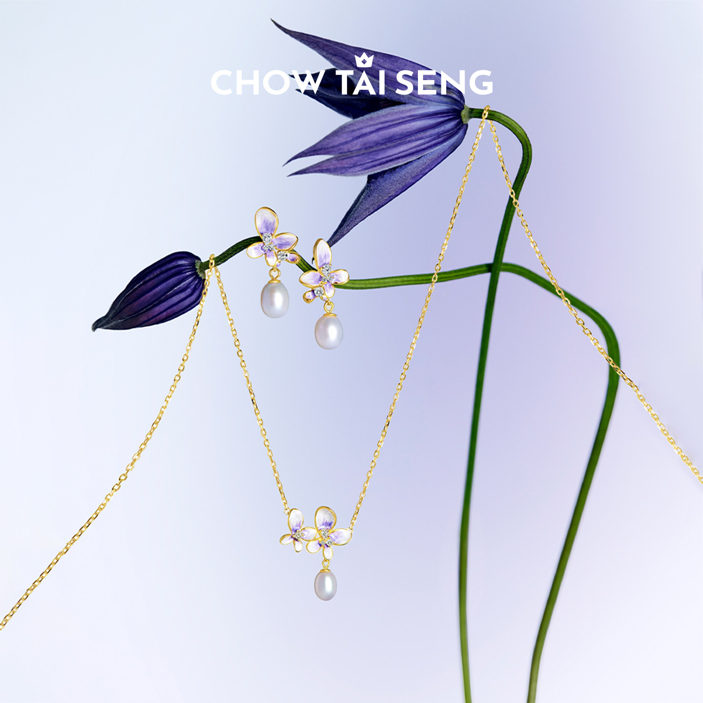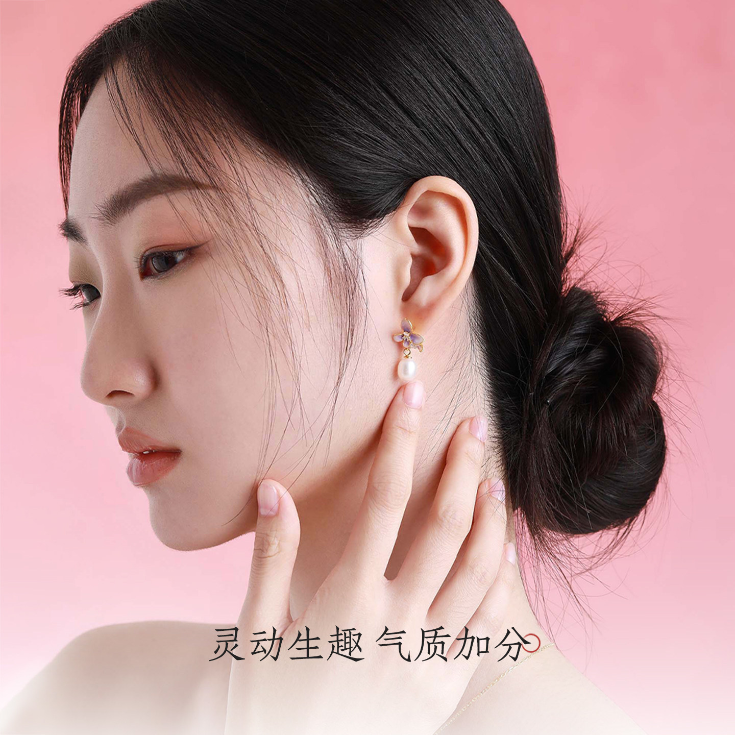 周大生紫藤花耳钉纯银925女轻奢设计珍珠耳环耳饰生日礼物送女友