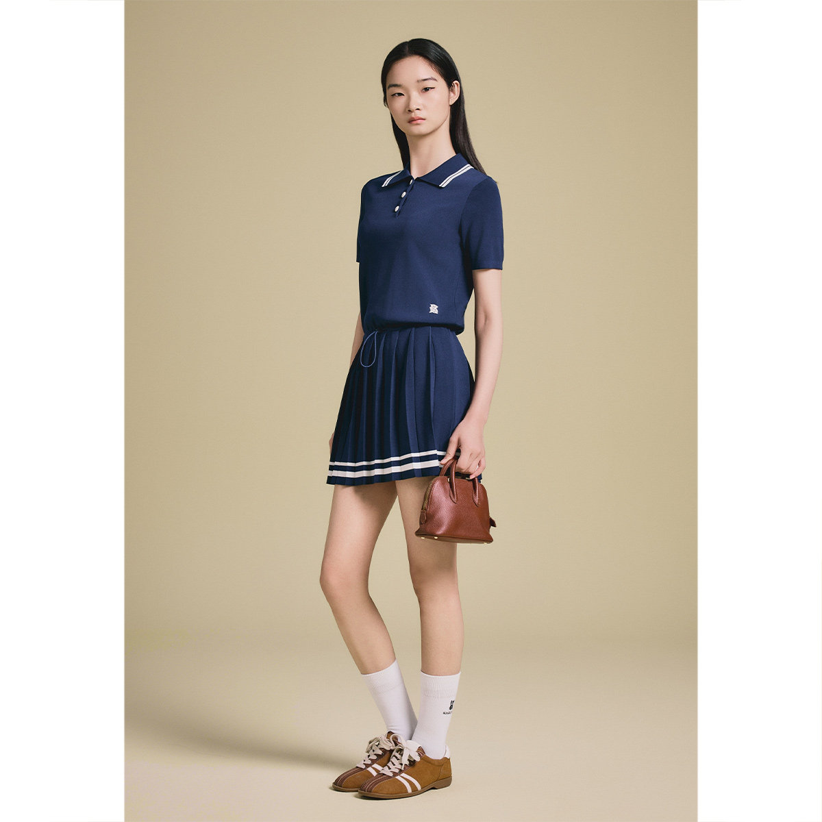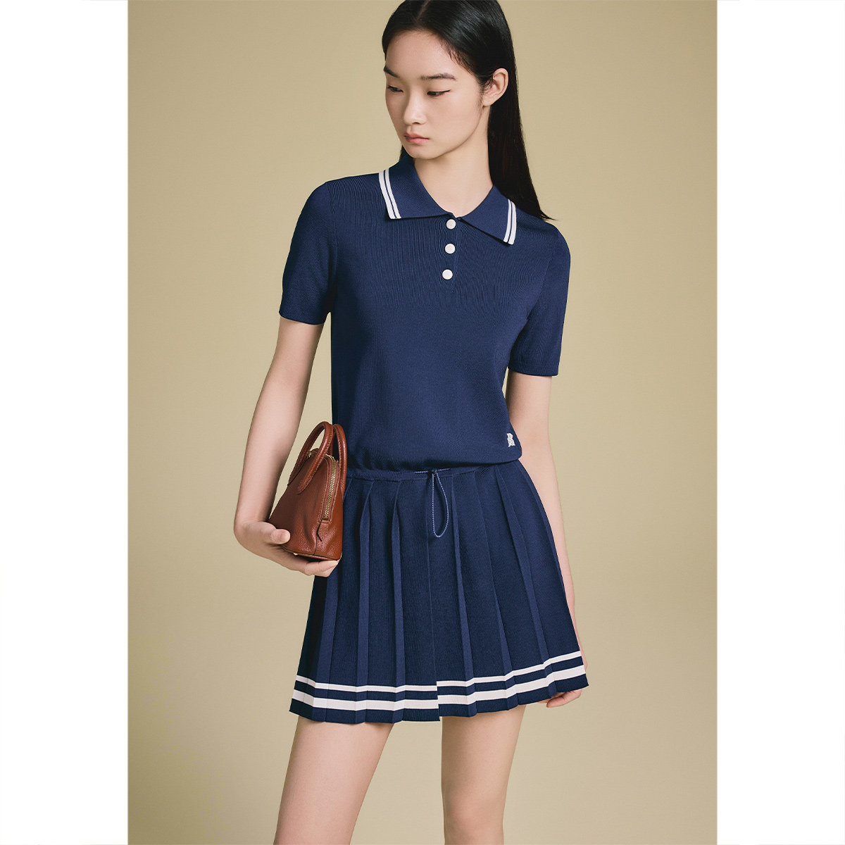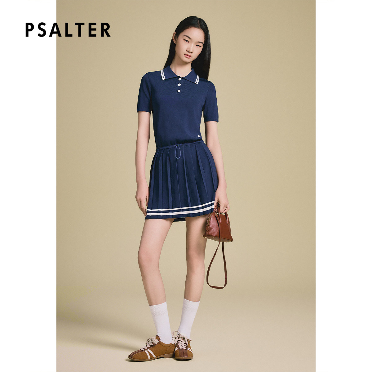 PSALTER诗篇学院风减龄polo领百褶针织短袖连衣裙2025夏季新款